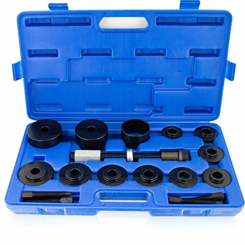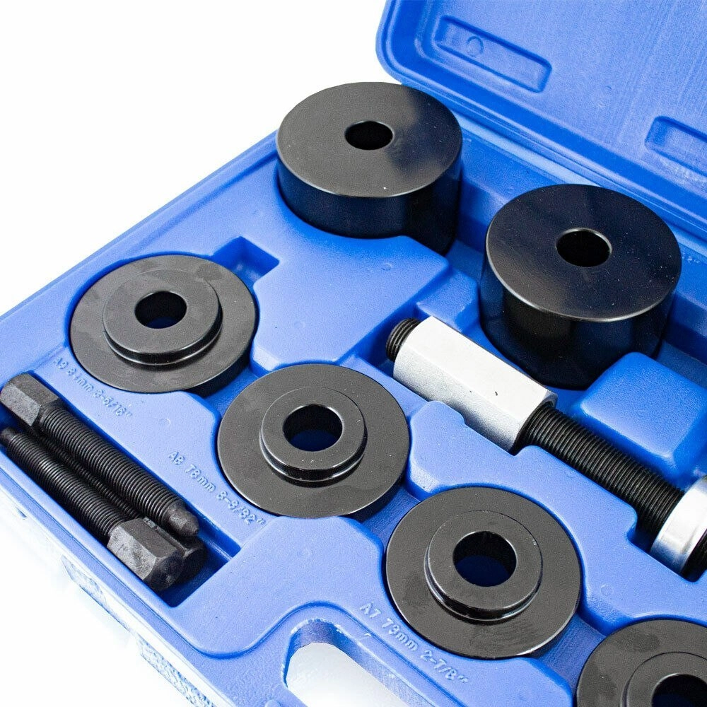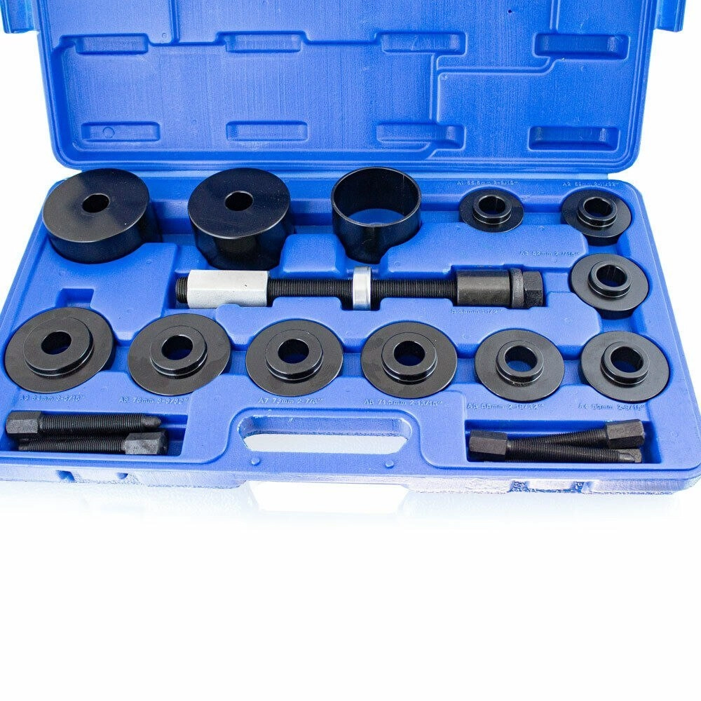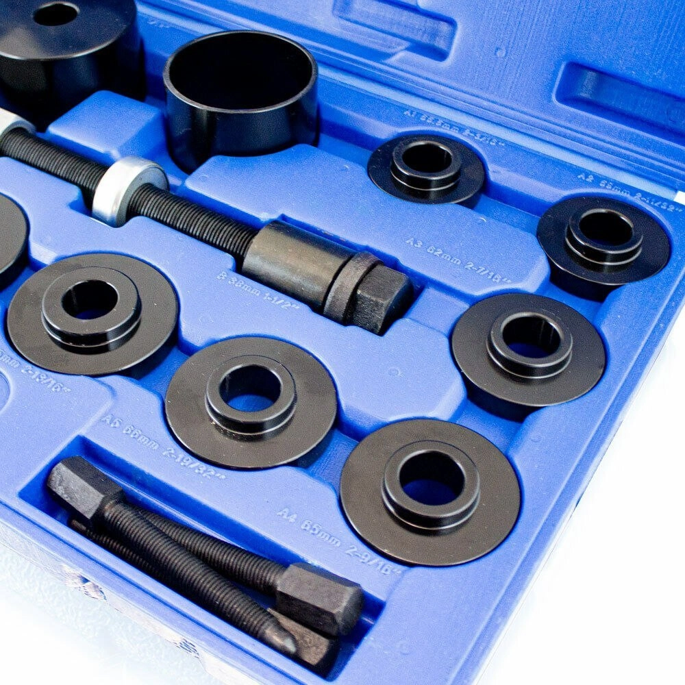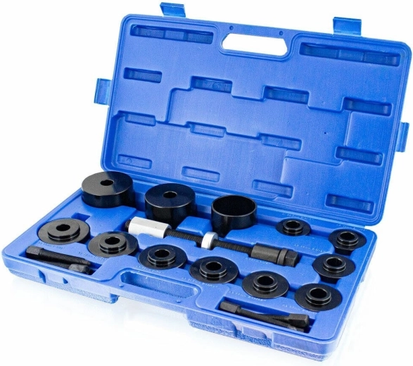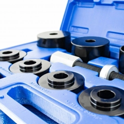 Táto 25-dielna sada na lisovanie a vyťahovanie ložísk a nábojov umožňuje efektívnu prácu priamo na vozidle – bez zbytočného rozoberania zavesenia. Vďaka širokej škále nadstavcov a sťahovákov pokryje mnoho rozmerov bežných automobilov a zaručí presné vedenie pri montáži aj demontáži.