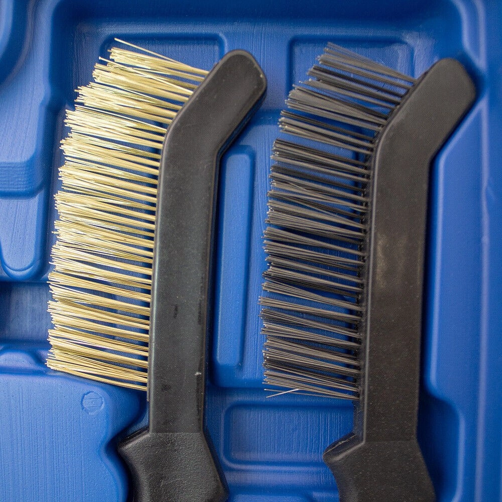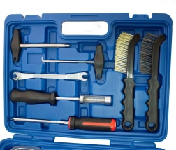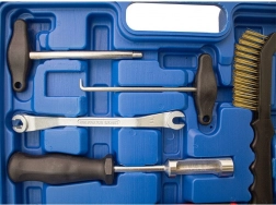Oceľová a mosadzná kefa spolu s pilníkom pomáhajú odstrániť nečistoty a koróziu, zabezpečiť hladký kontakt a dlhšiu životnosť bŕzd.