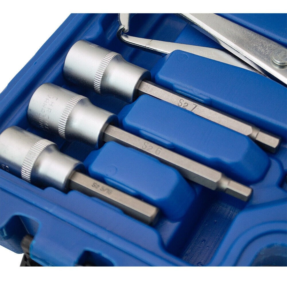 Táto profesionálna sada náradia na bubnové brzdy vám umožní efektívne demontovať a montovať pružiny, čistiť brzdové diely a vykonávať presné nastavenie. Vďaka odolným materiálom a ergonomickému prevedeniu je ideálna pre autoservisy aj domáce garáže.