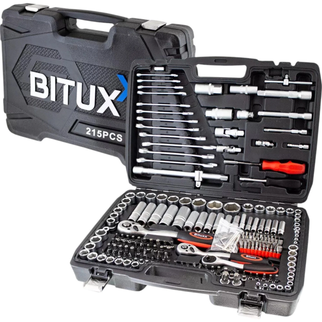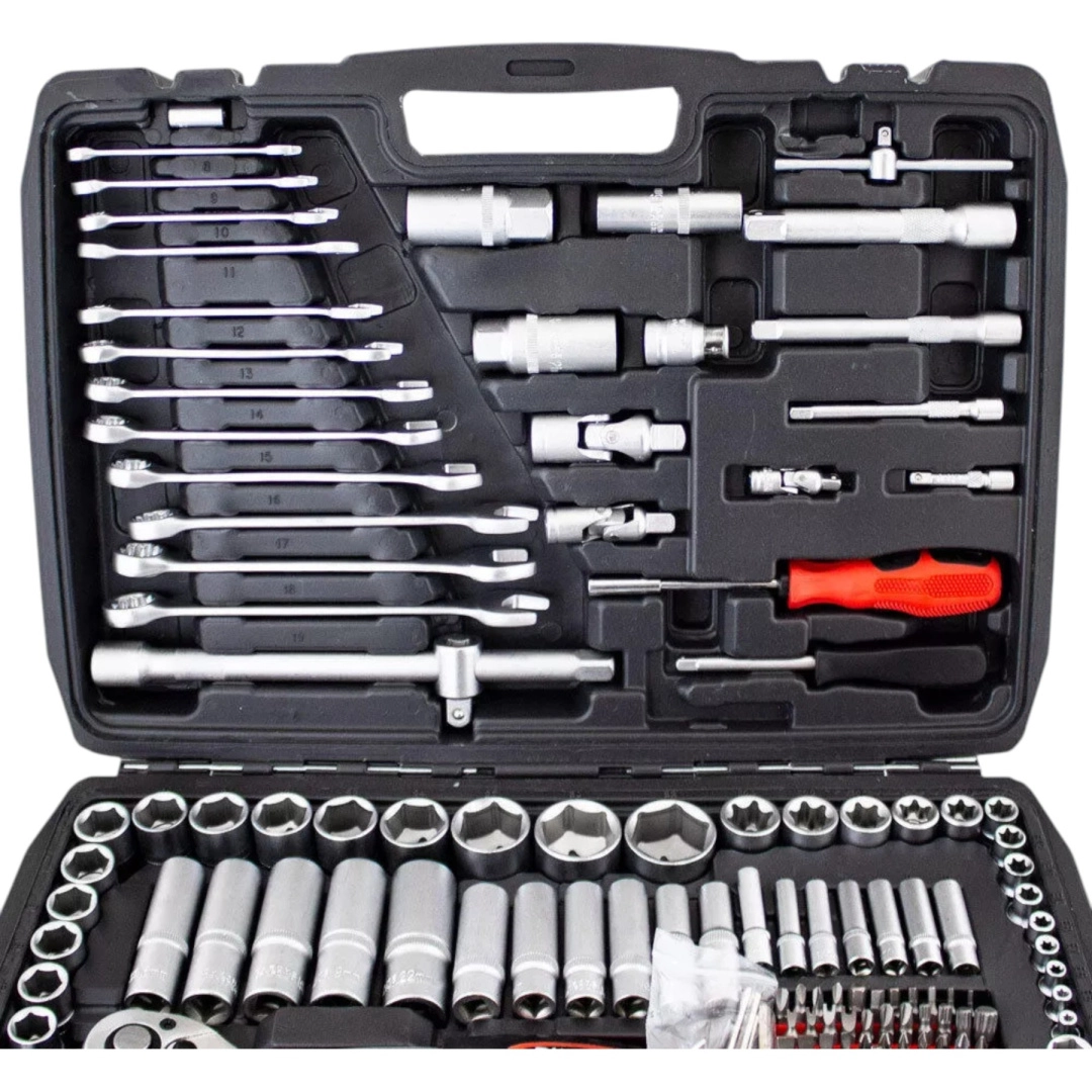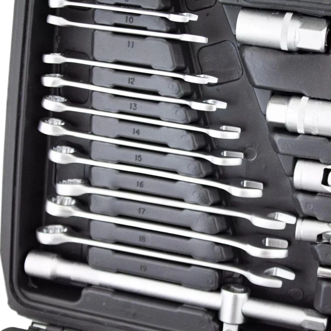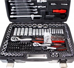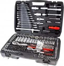 Táto univerzálna sada nástrčných kľúčov s 215 prvkami pokryje väčšinu prác na aute, okolo domu aj v profesionálnej dielni. Kvalitná chróm-vanádiová oceľ (CrV) zabezpečuje vysokú pevnosť, odolnosť proti korózii a dlhú životnosť aj pri intenzívnom používaní. Presné rozmery hlavíc a bitov umožňujú bezpečné a efektívne uťahovanie aj povoľovanie spojov.