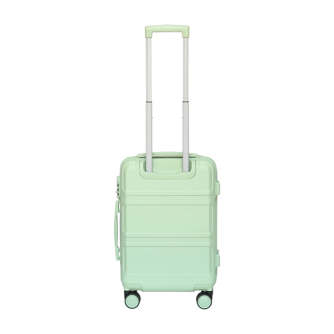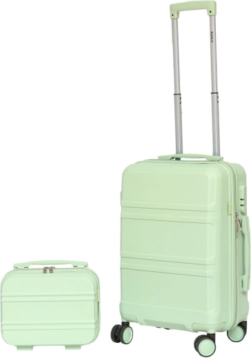 Elegantný set BARUT kombinuje ľahkosť, odolnosť a maximálnu mobilitu. Mätový odtieň je moderný a pomôže vám rýchlo rozpoznať batožinu na páse. Kabínový kufor so štyrmi dvojitými kolieskami 360° sa ovláda bez námahy a teleskopická rukoväť sa prispôsobí vašej výške.