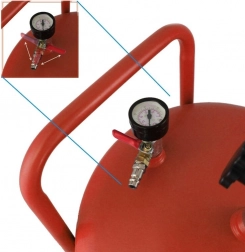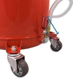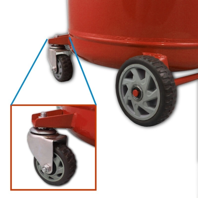 Podvozok s 2 pevnými kolesami a 2 otočnými kolieskami umožňuje jednoduché manévrovanie v dielni. Masívna oceľová nádoba, prehľadné ovládanie a bezpečnostný pretlakový ventil prinášajú istotu a dlhú životnosť pri každodennom používaní.