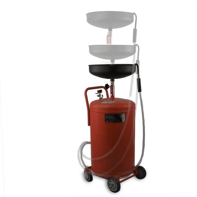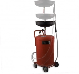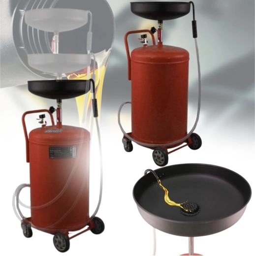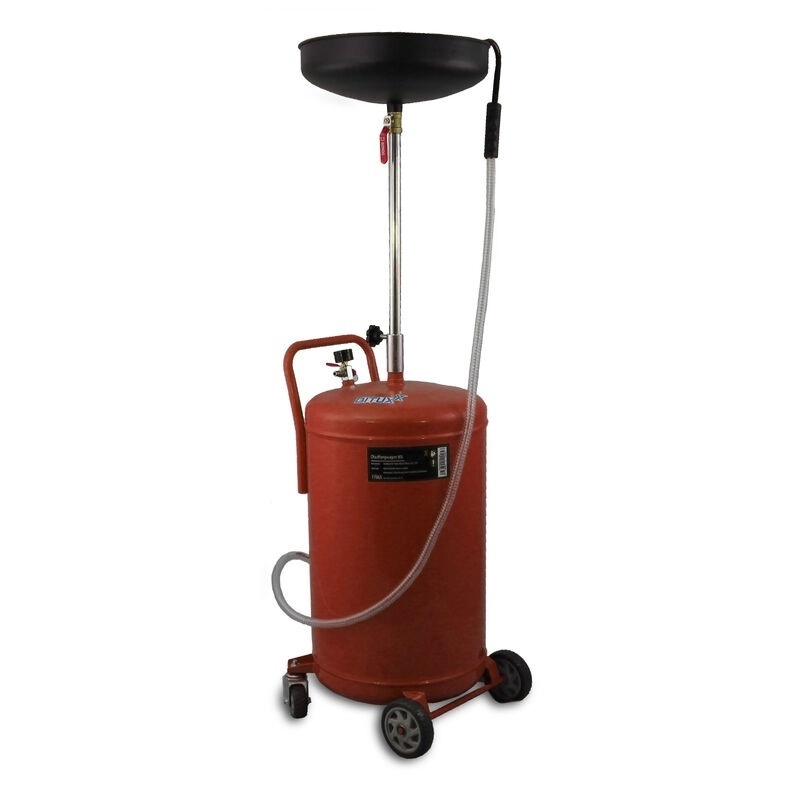 Profesionálna mobilná záchytná nádoba na olej s objemom 80 l s jednoduchým vyprázdňovaním pomocou stlačeného vzduchu. Vďaka výškovo nastaviteľnému lieviku 100–160 cm, robustnej oceľovej konštrukcii a podvozku so 4 kolesami je ideálna pre autoservisy aj domáce dielne. Rýchle vyprázdňovanie, veľká kapacita, pohyblivosť a bezpečná prevádzka v jednom.