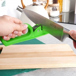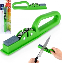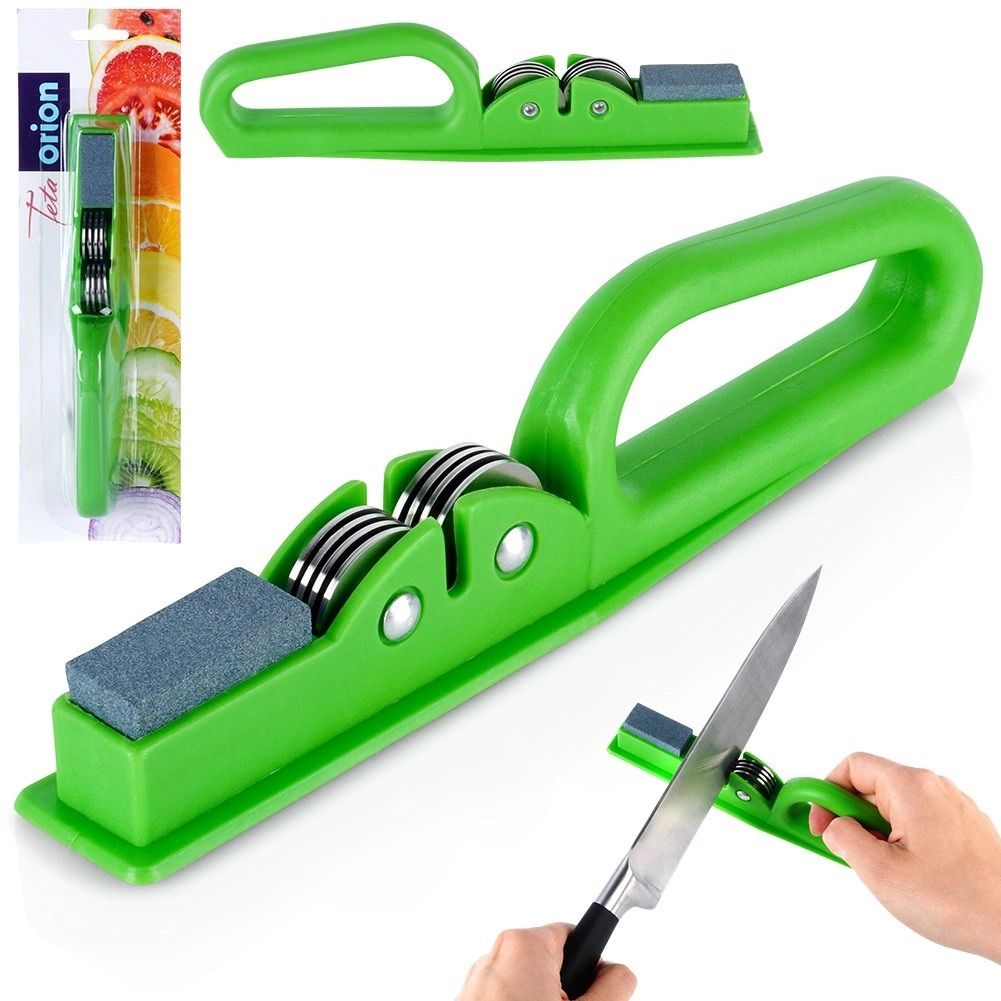 Udržiavajte svoje kuchynské nože dokonale ostré vďaka praktickému orezávaču s kombináciou kovových brúsnych koliesok a kameninovej dobrušovacej plochy. Vďaka dvojstupňovému brúseniu rýchlo obnoví ostrie a následne ho vyhladí pre čistý, presný rez. Pevná, pozdĺžna základňa zabezpečuje stabilitu a bezpečnosť pri práci, zatiaľ čo ergonomicky tvarované madlo poskytuje istý úchop.
