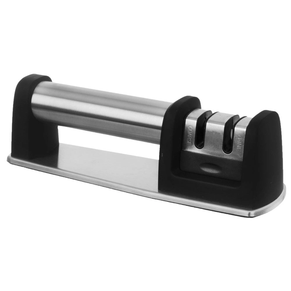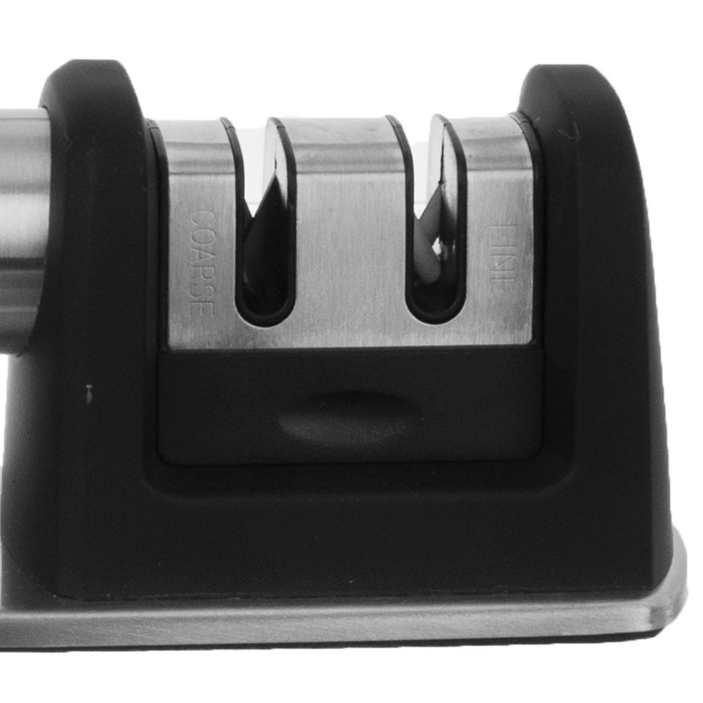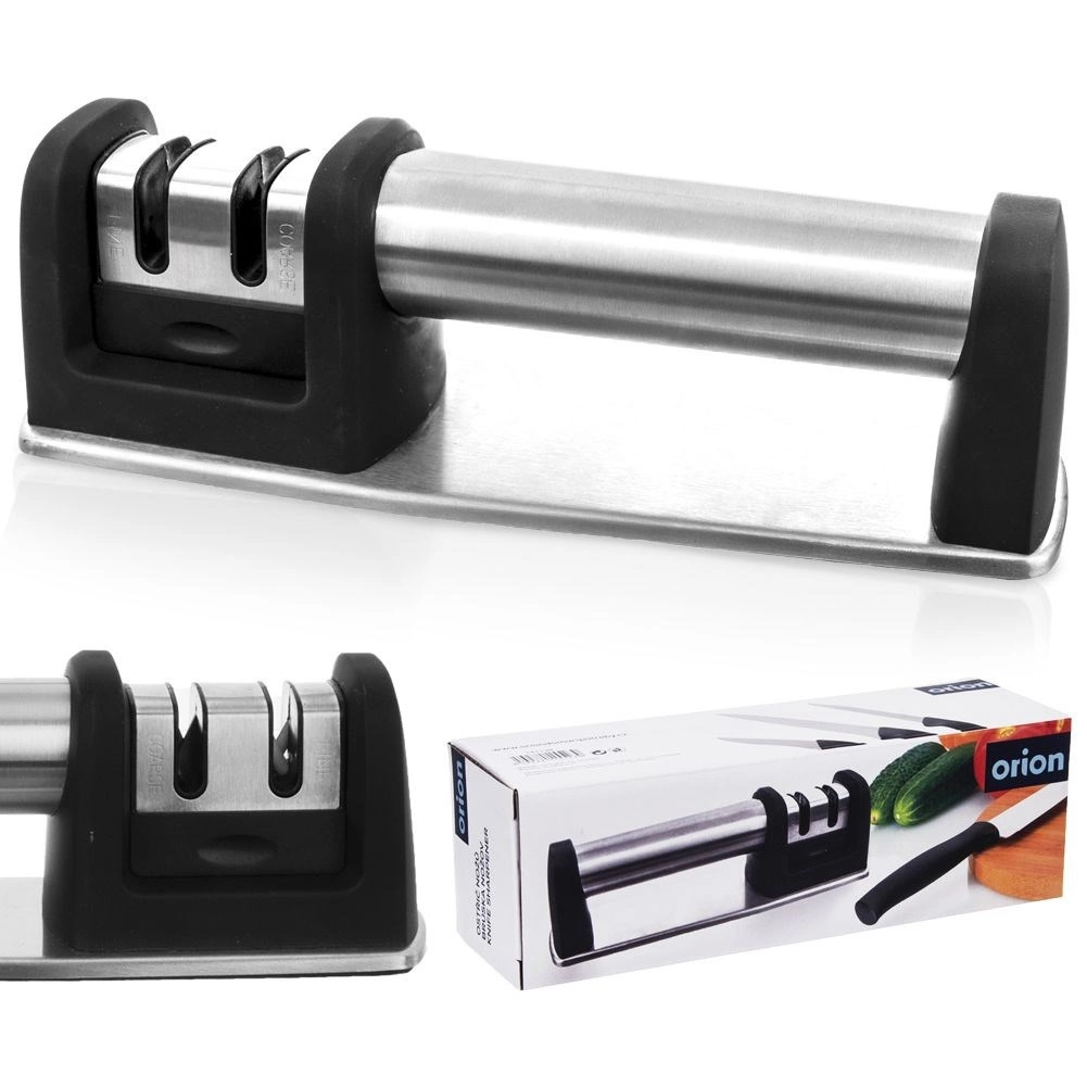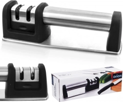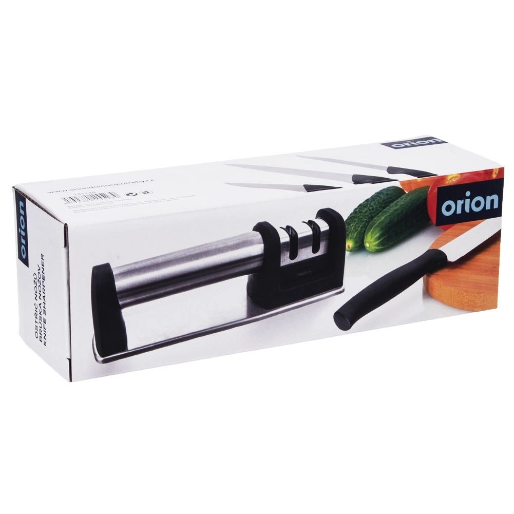 Udržiavajte svoje kuchynské nože v perfektnej kondícii s dvojstupňovým brúskom ORION. Robustná kombinácia nehrdzavejúcej ocele a odolného plastu zaručuje dlhú životnosť, zatiaľ čo protišmyková základňa a ergonomická rukoväť zaistia bezpečný a stabilný úchop pri brúsení. Dva samostatné sloty umožňujú najprv rýchle obnovenie ostria a potom jeho precízne doleštenie.