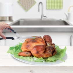Odolné kuchynské nožnice na hydinu z nehrdzavejúcej ocele s dĺžkou 24,5 cm uľahčia krájanie surového aj pečeného mäsa. Majú ergonomické rukoväte, ostré nehrdzavejúce čepele, bezpečnostný zámok na jednoduché a bezpečné uloženie a pevnú konštrukciu pre dlhú životnosť.