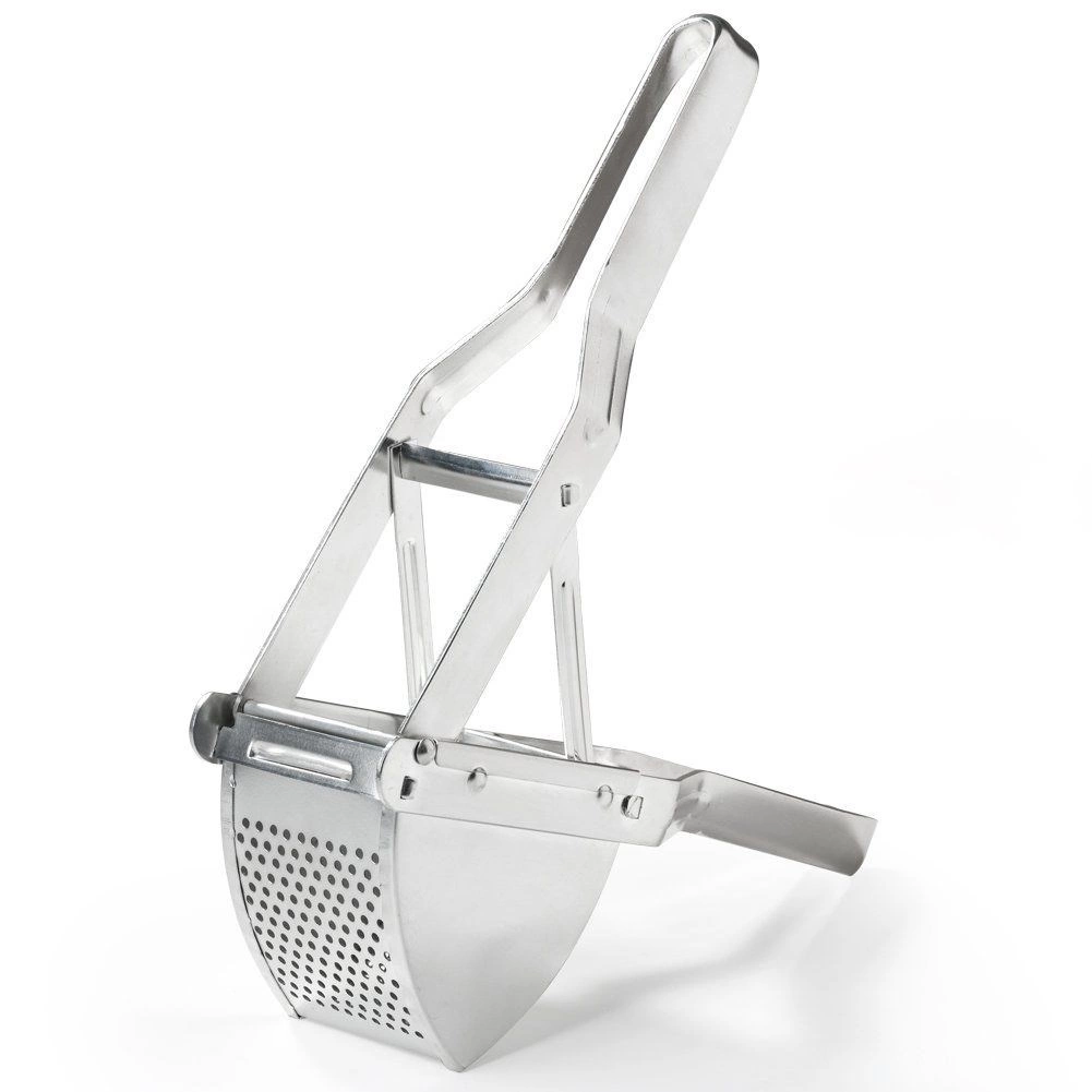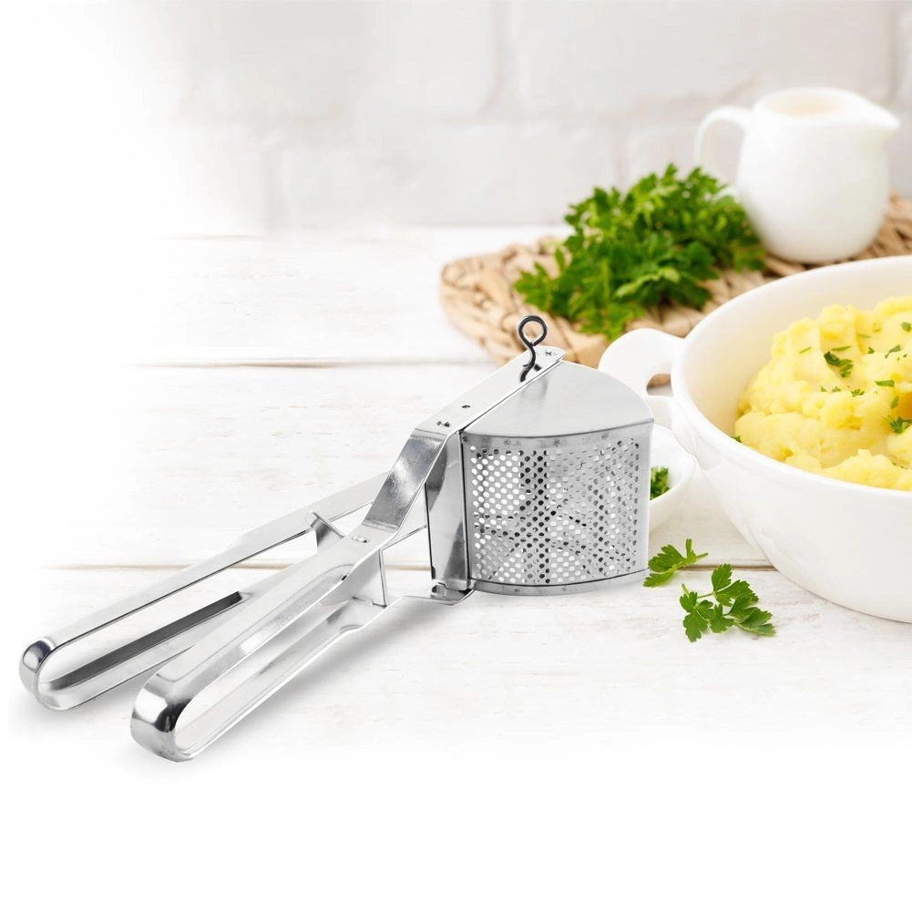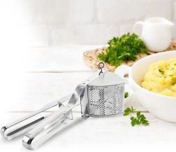 Tento odolný lis na zemiaky z nehrdzavejúcej ocele bez problémov pretlačí uvarené zemiaky aj ďalšiu mäkkú zeleninu či ovocie. Vďaka pevnej konštrukcii a pohodlným rukovätiam stačí len ľahko stlačiť a behom chvíľky získate jemnú a nadýchanú konzistenciu bez hrudiek.
