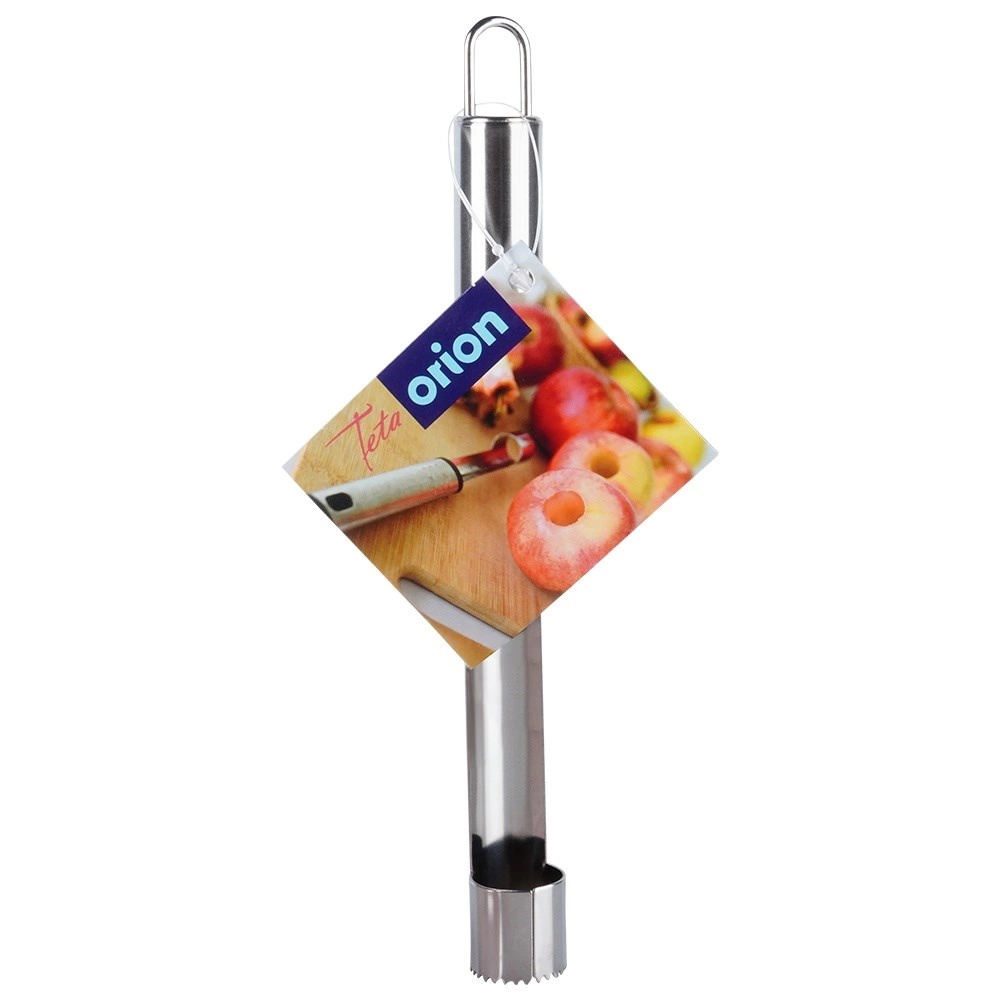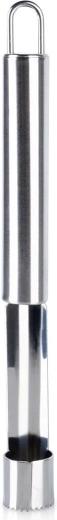 Praktická nerezová vykrajovačka jadierok s dĺžkou 20 cm na rýchle a čisté odstránenie stredu z jabĺk, hrušiek či paradajok. Vďaka ostrému zúbkovanému okraju a ergonomickej rukoväti pracuje ľahko a bezpečne. Celokovové vyhotovenie z nehrdzavejúcej ocele zaručuje dlhú životnosť, jednoduché čistenie a možnosť umývania v umývačke. Praktické očko na zavesenie uľahčí skladovanie.