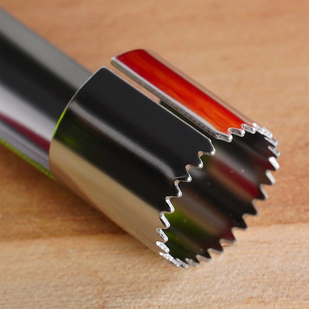 Zúbkovaná korunka ľahko preniká šupkou aj dužinou a zanecháva hladký otvor ideálny na plnenie či zdobenie.
