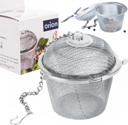Praktické oceľové sitko na korenie s priemerom 6 cm a výškou 6 cm na jednoduché dochucovanie polievok, vývarov, omáčok aj čajov. Má jemnú, husto tkanú sieťku, uzatvárateľný košíček a retiazku s háčikom na pohodlné zavesenie na okraj hrnca či kanvice. Vyrobené z kvalitnej nehrdzavejúcej ocele pre dlhú životnosť a jednoduchú údržbu.
