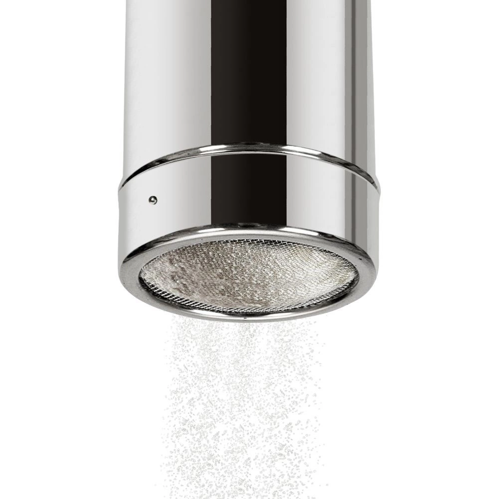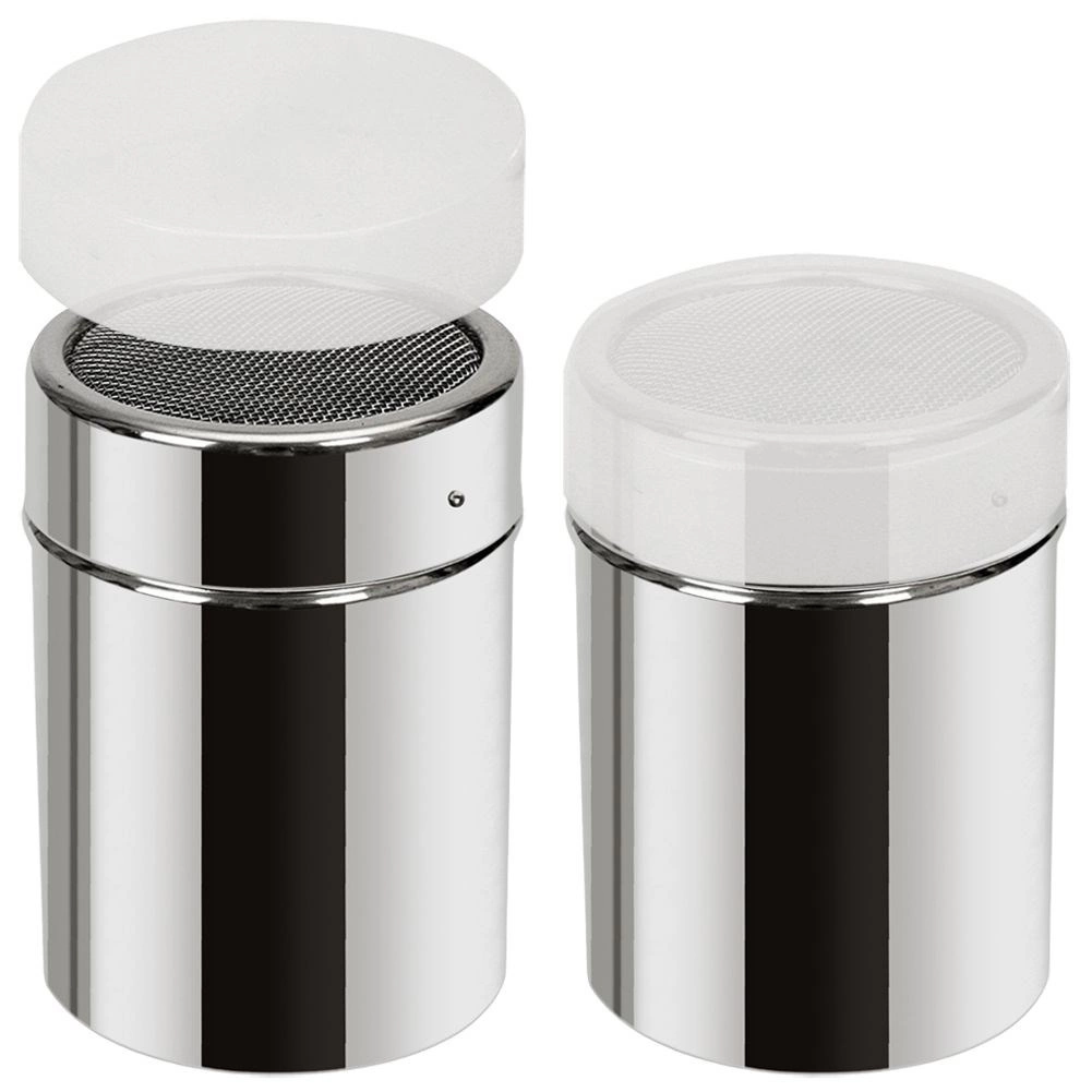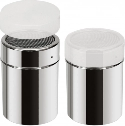 Tento zásobník s objemom 300 ml a priemerom 7 cm je vyrobený z kvalitnej nehrdzavejúcej ocele, doplnený priehľadným plastovým viečkom. Husté sitko zabezpečuje precízne dávkovanie jemných sypkých surovín bez hrudkovatenia a neporiadku. Skvelý pomocník na zdobenie dezertov, cappuccina alebo horúcej čokolády.