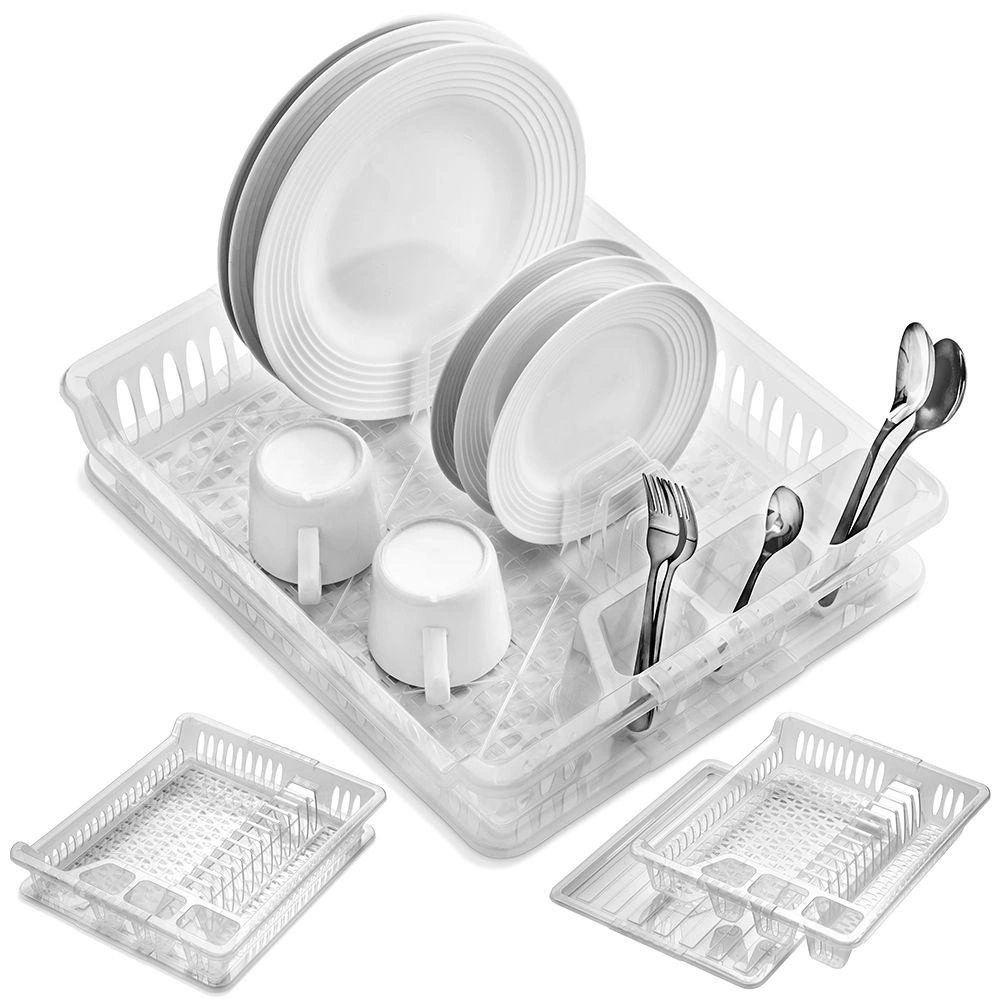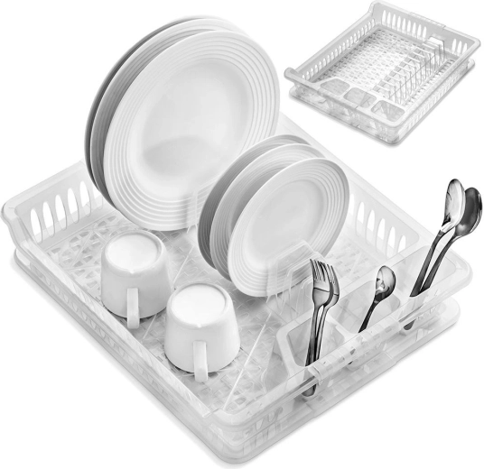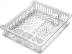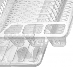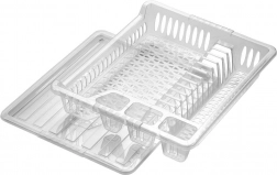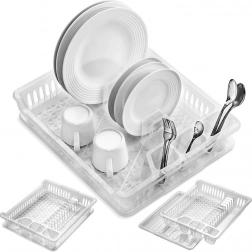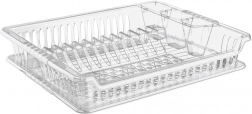 Kompaktný odkvapkávač na riad z kvalitného polopriehľadného plastu s vyberateľnou odkvapkávacou táckou. Ponúka miesto pre 12 tanierov, priestor pre hrnčeky a misky a 3 priehradky na príbory. Udrží kuchynskú linku čistú a suchú, je ľahko umývateľný a ladí s modernými aj klasickými kuchyňami.