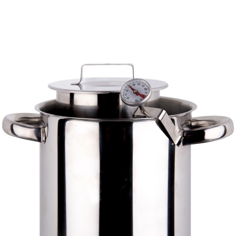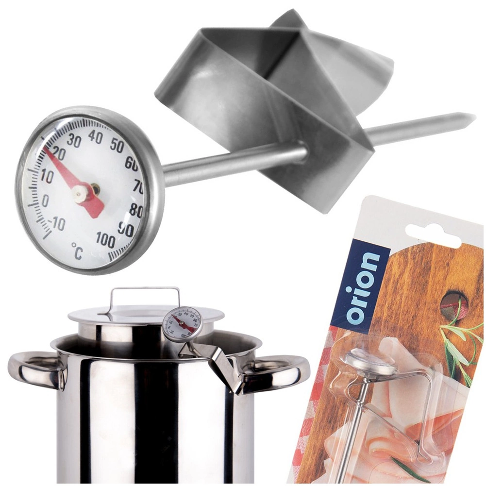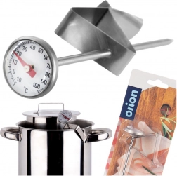 Tento odolný nerezový teplomer je ideálny pre každodenné varenie, pečenie, vyprážanie aj prípravu nápojov. Kovová sonda rýchlo sníma teplotu a veľký analógový ciferník umožňuje ľahké a rýchle čítanie. Vďaka praktickému klipsu teplomer bezpečne prichytíte na okraj nádoby – získate tak stabilné a presné meranie bez nutnosti držania v ruke.