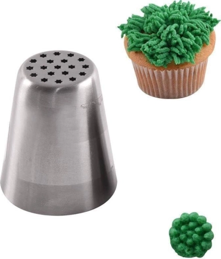 Táto ruská špička umožňuje rýchlo a efektne vytvárať dekorácie pripomínajúce trávu či jemné vlasy. Je perfektná na zdobenie krémom, polevou aj cestom a poteší ako začiatočníkov, tak profesionálnych cukrárov. Vďaka robustnej nerezovej konštrukcii je dlhodobo odolná a bezpečná na kontakt s potravinami.