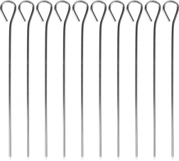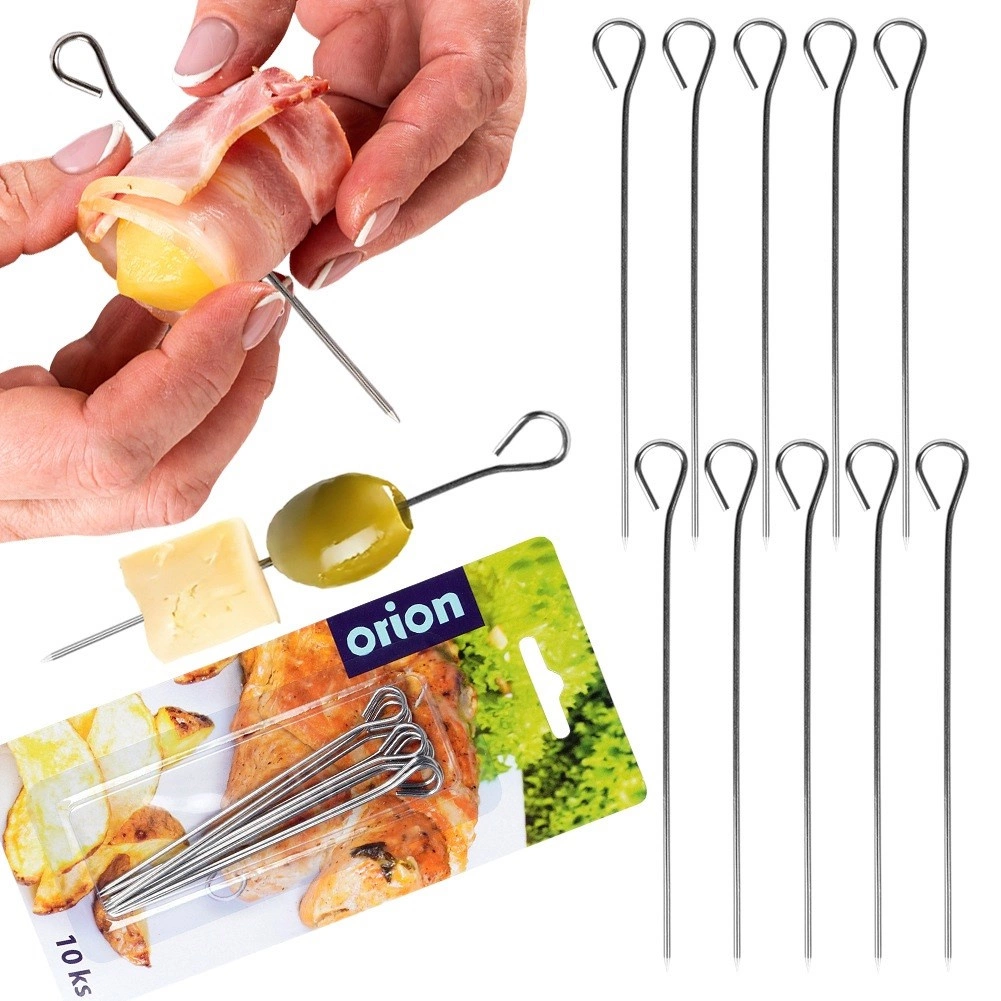 Praktická sada 10 nerezových špajdlí s dĺžkou 10 cm s pohodlným očkom na uchopenie. Ideálne na rolády, závitky, zrazy, ale aj ako štýlové špáradlo na kanapky, mini špízy či ovocné jednohubky. Odolná nerezová oceľ zaručí dlhú životnosť a ľahké čistenie.