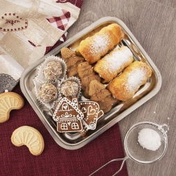 Obvodový rantl zabraňuje skĺznutiu pochutín a uľahčuje manipuláciu pri servírovaní.