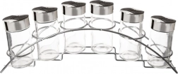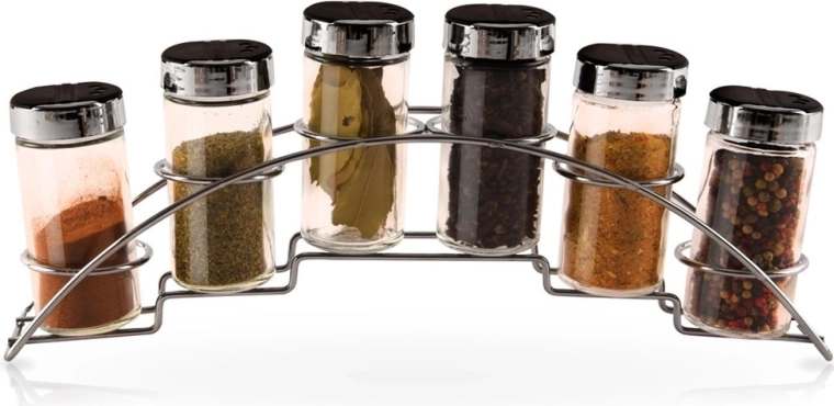 Zakrivený kovový stojan pojme všetky poháriky prehľadne a stabilne, takže často používané koreniny máte vždy pohodlne dostupné na kuchynskej linke.