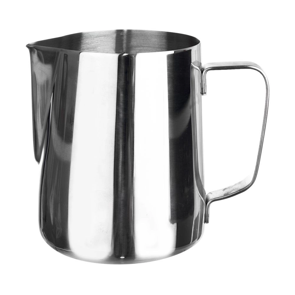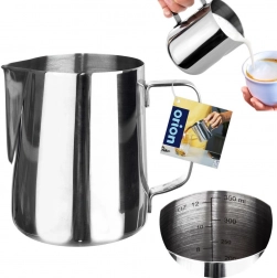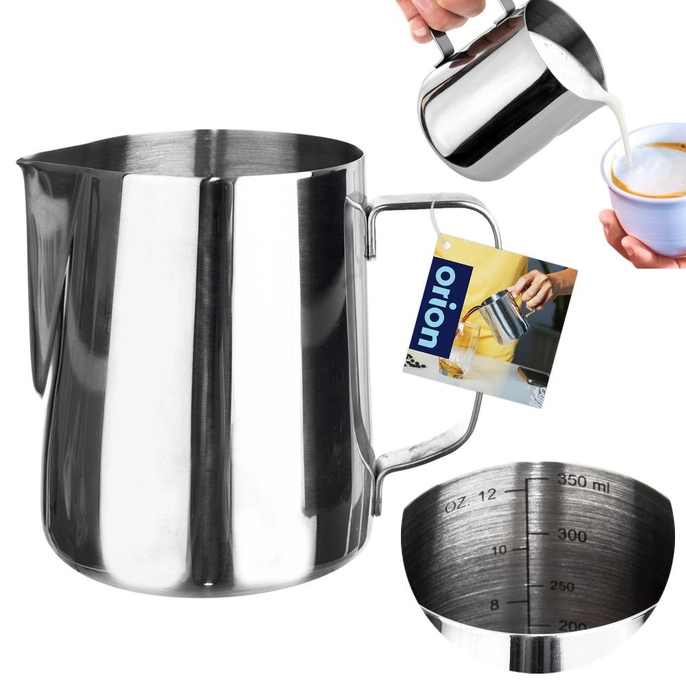 Nerezová kanvička na mlieko s objemom 350 ml je ideálnou voľbou pre domácu aj kaviarenskú prípravu kávy. Vďaka presnej výlevke ľahko nalejete mlieko do cappuccina či latté a vnútorná ryska po 50 ml zaistí presné odmeranie potrebného množstva. Pevné ergonomické ucho uľahčuje manipuláciu aj pri horúcom obsahu.