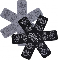 Vyrobené zo syntetického vlákna v čiernej a sivej farbe (zasielame náhodne, bez možnosti výberu). Priečky sú ľahké, odolné a skladné, umožnia bezpečné stohovanie aj úsporu miesta v skrinkách. Pre správne použitie nepokladajte na horúce ani znečistené povrchy.