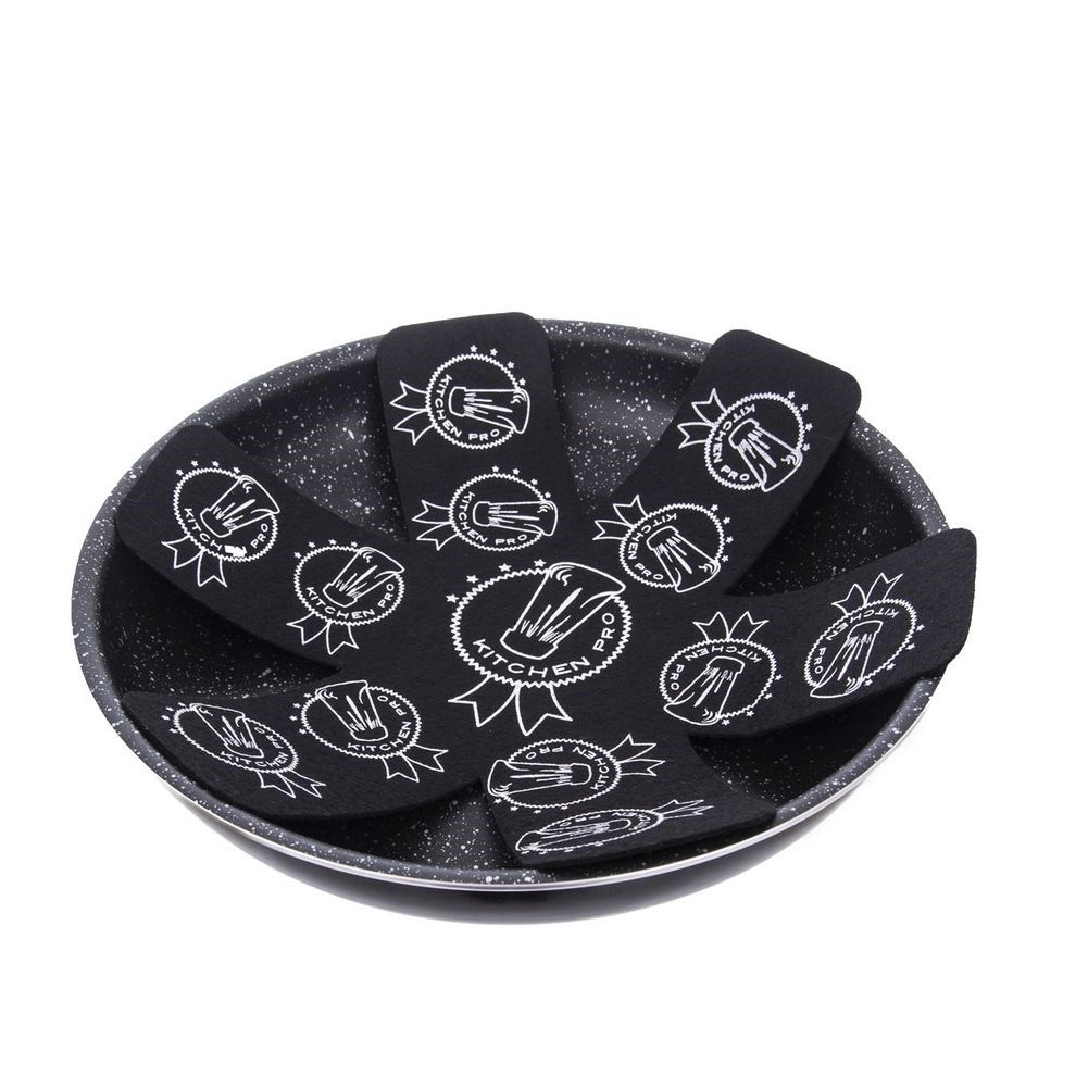 Udržujte svoj riad ako nový s filcovými priečkami s priemerom 32 cm. Sú vhodné medzi panvice, hrnce, misy aj ďalší kuchynský riad a zabraňujú poškriabaniu nepriľnavých povrchov a inému mechanickému poškodeniu. Hviezdicový tvar so širokými ramenami spoľahlivo kryje citlivé plochy.