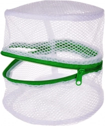 Praktická sieťka na pranie bielizne a spodnej bielizne chráni citlivé tkaniny pred poškodením a zamotávaním. Má rozmery 14 × 17 cm, je z pevného polyesterového materiálu, rýchlo schne a umožňuje voľný prietok vody a pracích prostriedkov. Ideálna najmä na podprsenky a jemnú bielizeň, so zapínaním na zips pre bezpečné uzavretie.
