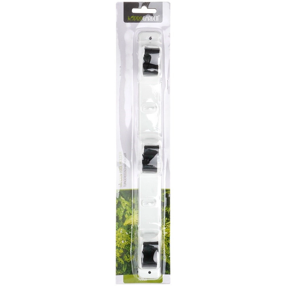Trojitý nástenný držiak PROGARDEN pomôže udržať poriadok a mať všetko po ruke. Tri automatické pružinové upínače pevne držia násady mopov, metiel či hrablí, zatiaľ čo dva praktické háčiky poslúžia na handry, metličky alebo lopatky. Vďaka kombinácii pevného kovu a odolného plastu je držiak stabilný, spoľahlivý a vhodný na každodenné používanie.
