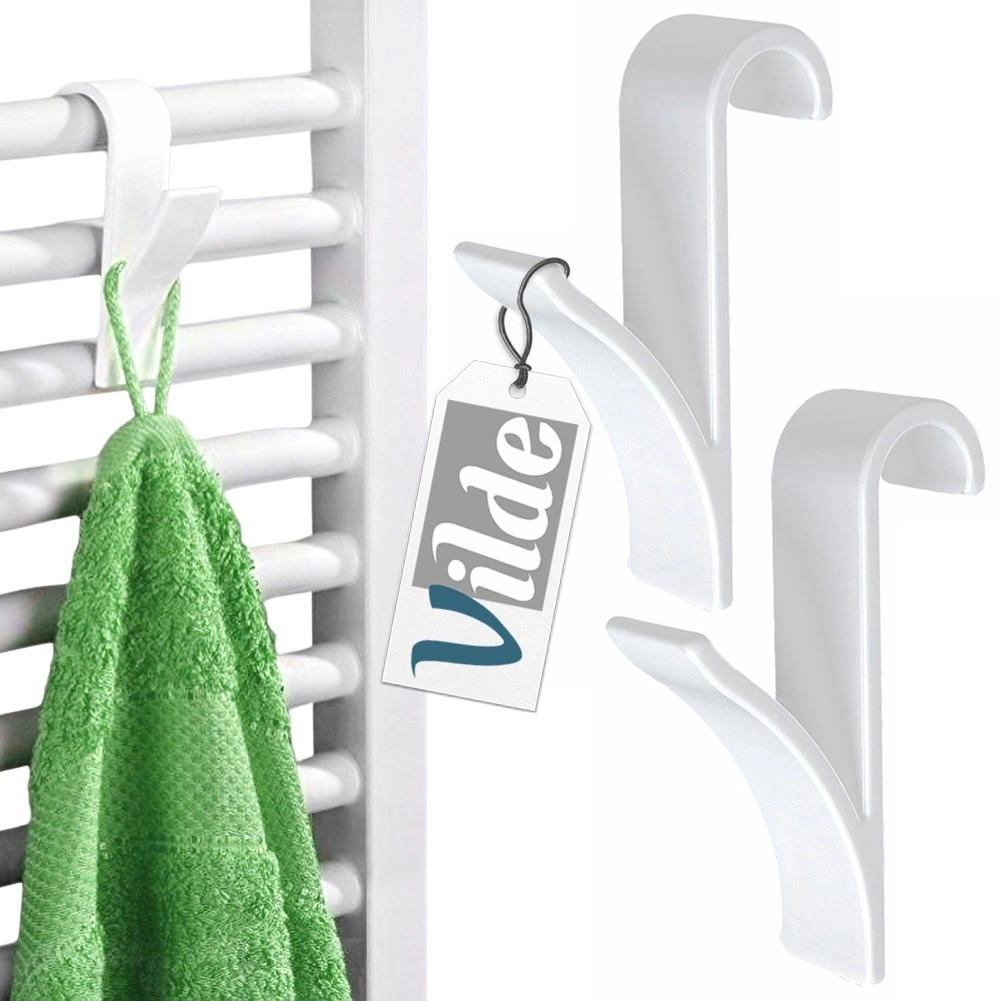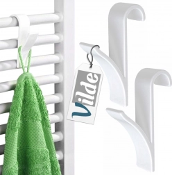 Praktická sada dvoch háčikov na radiátor alebo rebríkový kúpeľňový ohrievač pre rýchle sušenie a úsporu miesta. Vďaka montáži bez náradia ich jednoducho zavesíte na rúry či hranu do hrúbky 2,5 cm. Vyrobené z odolného plastu v bielej farbe, ideálne na uteráky, župany či kuchynské utierky. Univerzálne použitie v kúpeľni, kuchyni aj predsieni, bez vŕtania a poškodenia povrchov, rýchla inštalácia a úspora miesta v každej domácnosti.