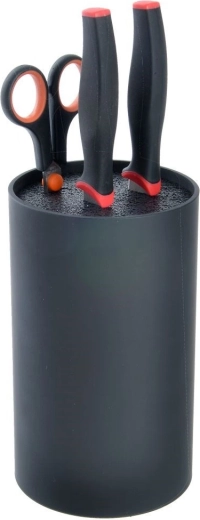 Štýlový univerzálny blok na nože s rozmermi 11 × 11 × 18 cm zaistí bezpečné a prehľadné uloženie kuchynských nožov, nožníc aj náradia. Má vyberateľnú štetinovú vložku, ktorá sa prispôsobí rôznym tvarom čepelí bez rizika otupenia. Ľahký a odolný plast v elegantnej čiernej farbe sa hodí do modernej aj klasickej kuchyne. ORION kvalita podľa európskych štandardov.