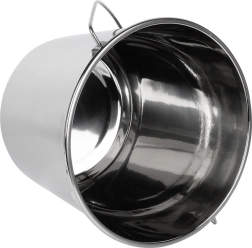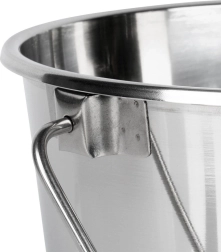Univerzálne nerezové vedro je nepostrádateľným pomocníkom na každodennú prácu v domácnosti aj v profesionálnej prevádzke. Hladký nerezový povrch sa ľahko čistí a neabsorbuje pachy, robustné drôtené ucho zabezpečuje pohodlné prenášanie aj možnosť zavesenia. Rozmery cca 30 × 33 cm poskytujú dostatok priestoru na vodu, mlieko, ovocie či suroviny na stavbe.