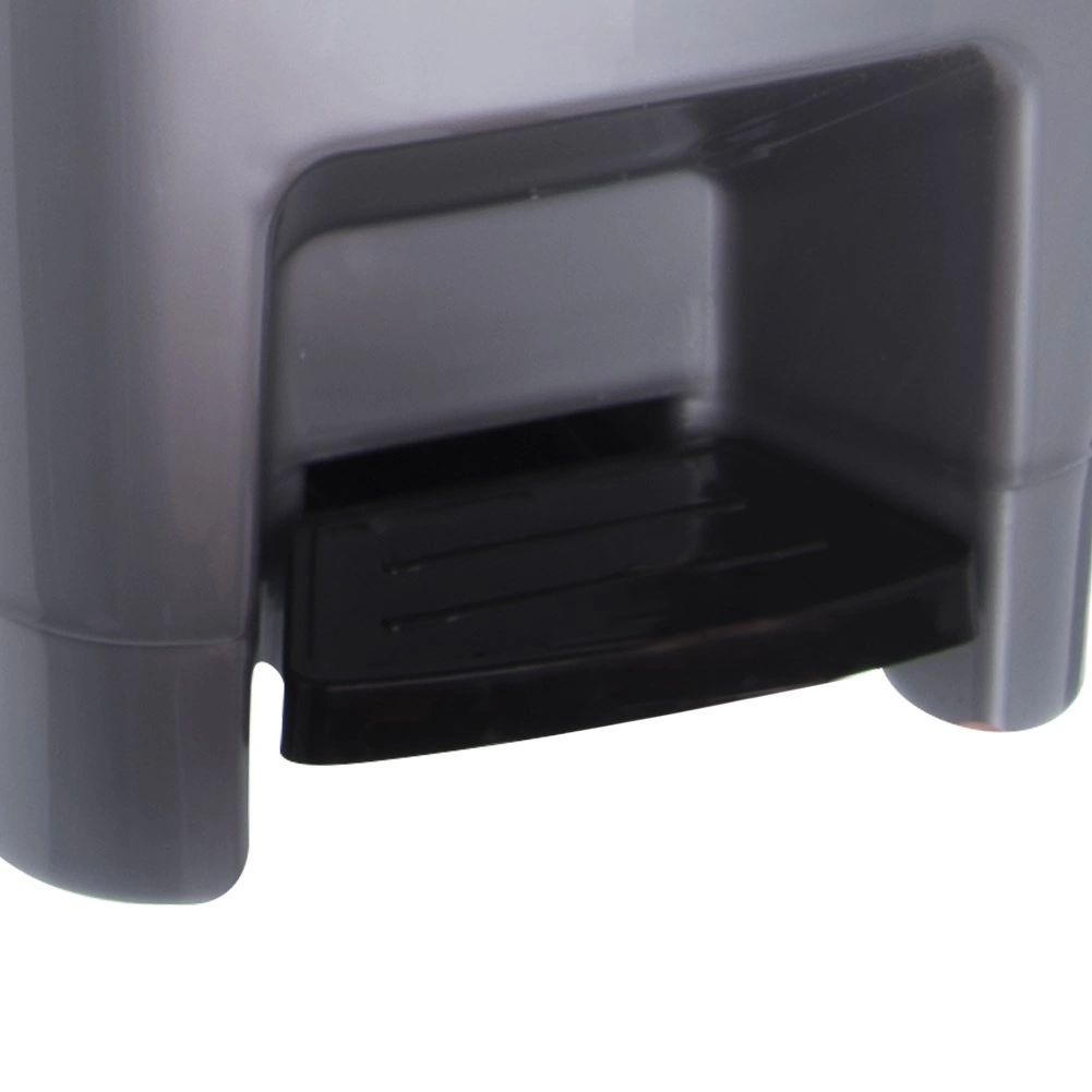 Kompaktný odpadkový kôš s objemom 10 l s pedálovým otváraním pre hygienické používanie bez dotyku. Úzke prevedenie šetrí miesto, pevný plast v sivej farbe s čiernym vekom spoľahlivo zadrží pachy. Vo vnútri sú sklopné držiaky na sáčky pre čisté a stabilné uchytenie.