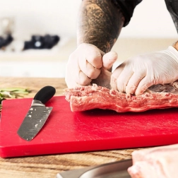 Pohodlné a bezpečné držanie aj pri dlhšom krájaní. Tvar rukoväte zaisťuje istotu úchopu a lepšiu kontrolu nad nožom.