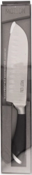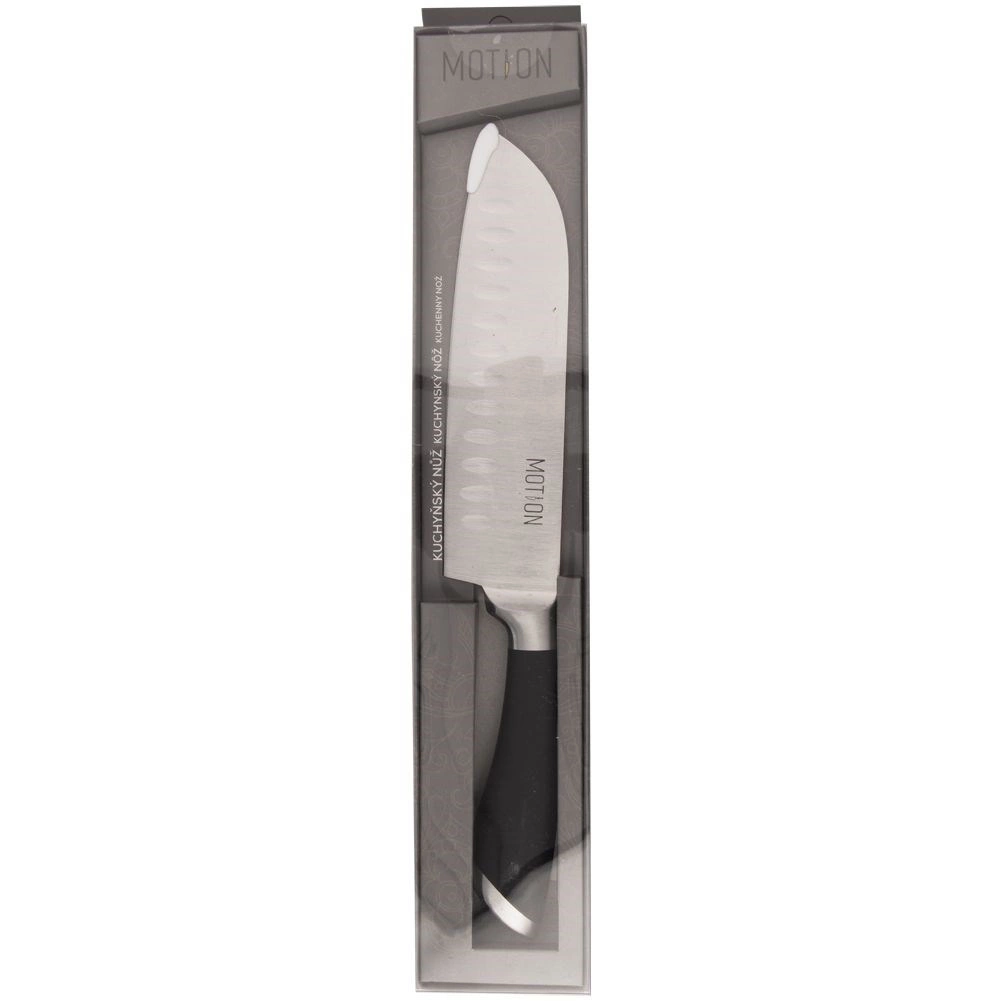 Nôž santoku MOTION kombinuje ostrú nehrdzavejúcu čepeľ s pohodlnou, protišmykovou rukoväťou v elegantnej čiernej farbe. Vďaka vyváženej konštrukcii a tvaru čepele je skvelý na presné krájanie, sekanie aj plátkovanie. Čepeľ z kvalitnej nehrdzavejúcej ocele si drží ostrosť a ľahko preniká surovinami.