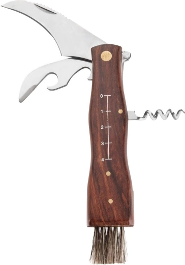 Vďaka multifunkčnej výbave – otvárač na korunkové uzávery a vývrtka – je tento vreckový pomocník perfektný na výlety, pikniky a kempovanie. Skladacia konštrukcia zabezpečuje bezpečné prenášanie a minimálne nároky na priestor; očko na rukoväti umožní jednoduché pripnutie na šnúrku či karabínu.
