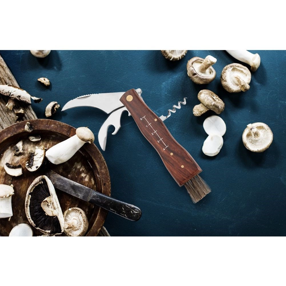 Zakrivené, 8 cm ostrie z nehrdzavejúcej ocele uľahčuje odrezanie a uchopenie húb a umožní predbežné očistenie ešte v teréne.