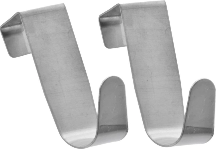 Praktická sada dvoch háčikov na dvere z matnej nehrdzavejúcej ocele v striebornej farbe. Ideálne na úsporu miesta v kúpeľni, kuchyni či predsieni. Montáž je bez vŕtania – stačí ich zavesiť na dvere alebo skrinku. Každý háčik má rozmery 2,5 × 7 cm a je vhodný pre dvere s hrúbkou do 2 cm. Odolné, univerzálne a ľahko použiteľné na uteráky, župany, utierky alebo oblečenie.