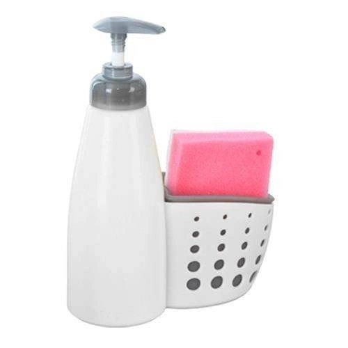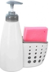 Praktický dávkovač na umývací prostriedok alebo tekuté mydlo s vyberateľným držiakom na hubku udrží vašu kuchyňu aj kúpeľňu krásne zorganizované. Vďaka objemu 370 ml ľahko doplníte obľúbený prostriedok a pomocou pohodlnej pumpičky použijete presne toľko, koľko potrebujete – bez plytvania. Odolné plastové prevedenie v bielo-sivej farbe, odvetrávaný stojanček pre rýchle schnutie hubky a kompaktné rozmery 15 × 7 × 20 cm robia z tohto setu chytrý doplnok pre každý drez aj umývadlo.