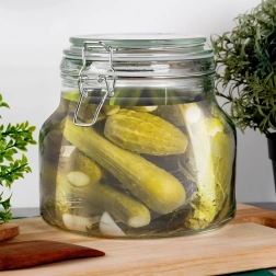 Praktická sklenená dóza s objemom 1,85 l a pevným klipovým uzáverom je ideálna na každodenné použitie v kuchyni. Vďaka gumovému tesneniu je uzáver dokonale tesný, takže potraviny zostanú dlhšie čerstvé, voňavé a chránené pred vlhkosťou. Dóza z kvalitného silného skla je skvelá na kávu, cestoviny, orechy, cukor aj sušené huby a zároveň sa hodí na nakladanie a kvasenie zeleniny či domáce zaváraniny.