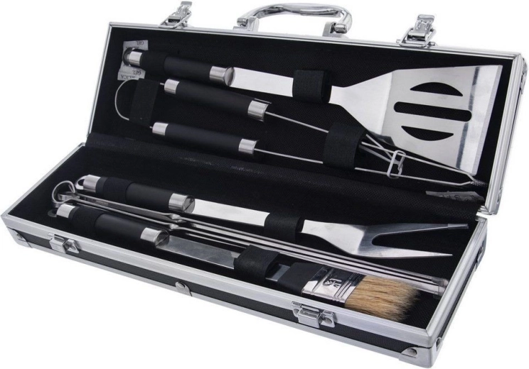 Všetko, čo potrebujete pre bezstarostné grilovanie, na jednom mieste. Táto 9-dielna sada z nehrdzavejúcej ocele ponúka robustné nástroje s pohodlnými, dlhými rukoväťami pre bezpečné a isté ovládanie pri horúcom grile. Praktický kufrík s držadlom a uzávermi zabezpečuje prehľadné uloženie a jednoduché prenášanie.