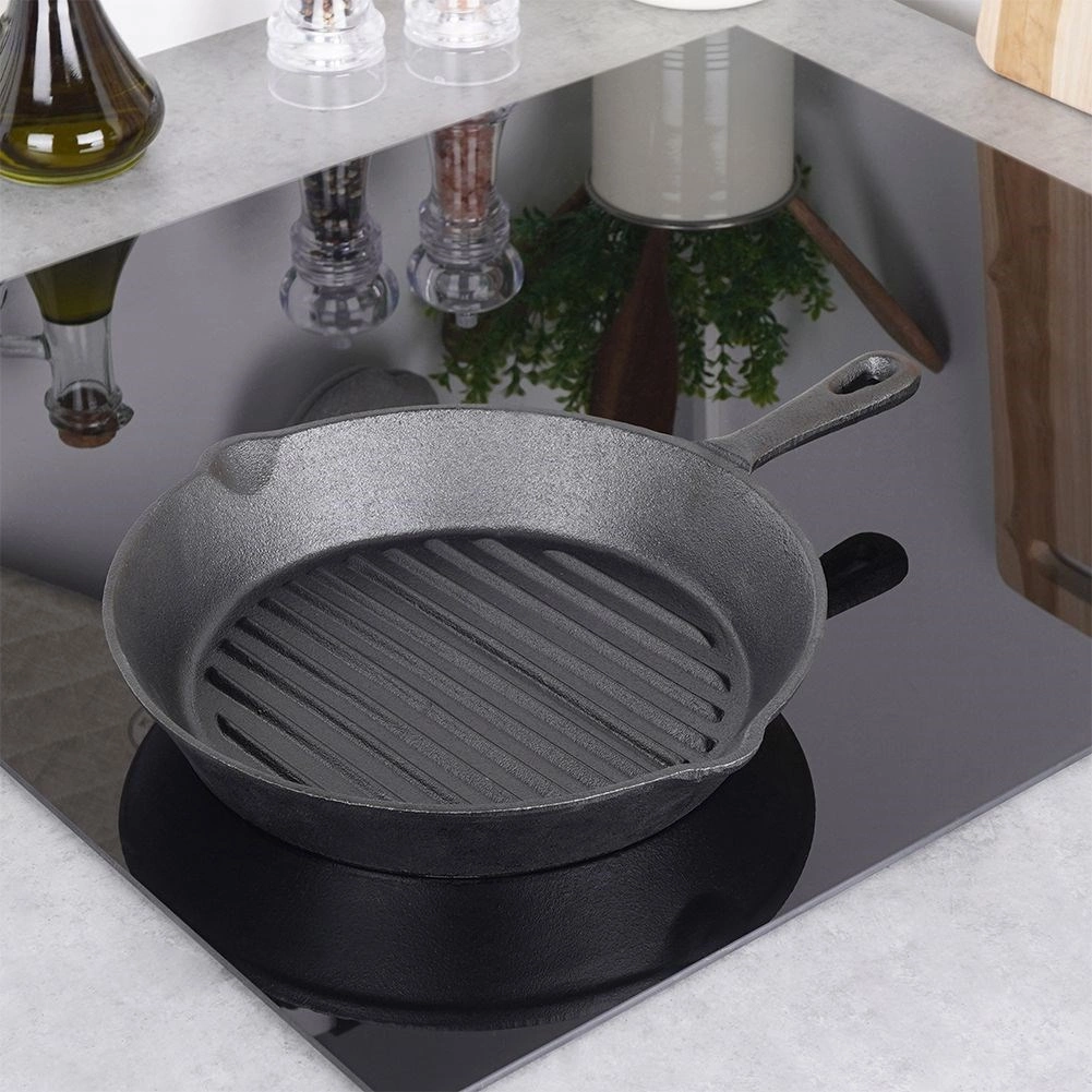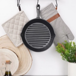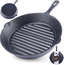 Robustná liatinová grilovacia panvica s priemerom 24 cm na dokonale opečené steaky, zeleninu aj zemiaky. Vďaka masívnej konštrukcii skvele akumuluje teplo, vytvára výrazné mriežkové stopy a je vhodná na všetky typy sporákov vrátane indukcie aj do rúry. Dvojstupňové výlevky uľahčia zlievanie šťavy, vysoká odolnosť voči teplu zaistí dlhú životnosť a univerzálne použitie oceníte doma aj na grile či pri ohni.