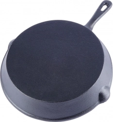 Panvica je univerzálna – hodí sa na plyn, elektrinu, sklokeramiku, halogén aj indukciu, rovnako tak do rúry či priamo na gril alebo otvorený oheň. Praktické dve výlevky a pohodlné ucho uľahčujú manipuláciu aj servírovanie.