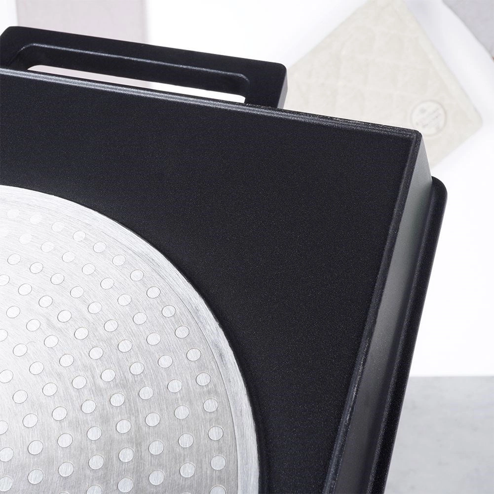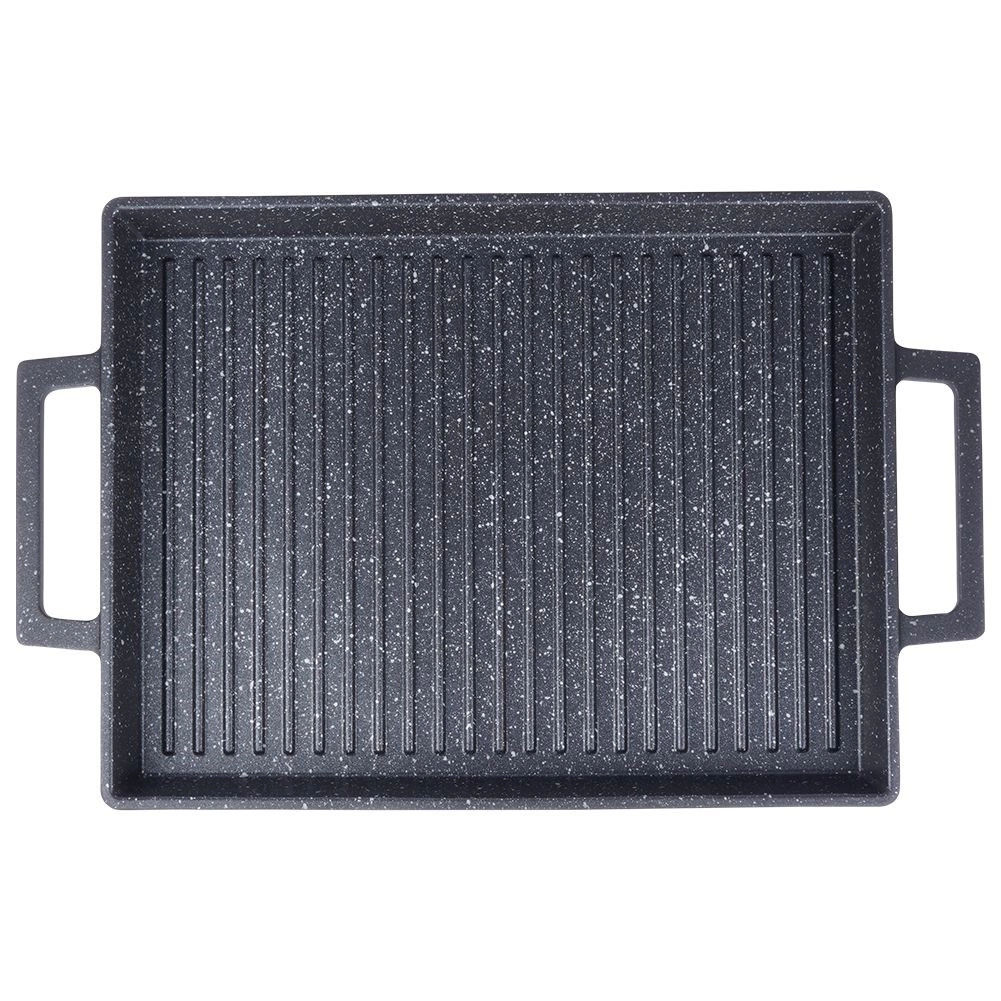 Je vhodná na plynové, elektrické, sklokeramické aj indukčné sporáky, rovnako tak do rúry alebo na gril (neumiestňujte priamo do plameňov). Dosku možno umývať v umývačke a odolná povrchová úprava je rezistentná proti poškriabaniu a vysokým teplotám. Ideálna na steak, zeleninu, ryby aj syry doma aj na záhrade.