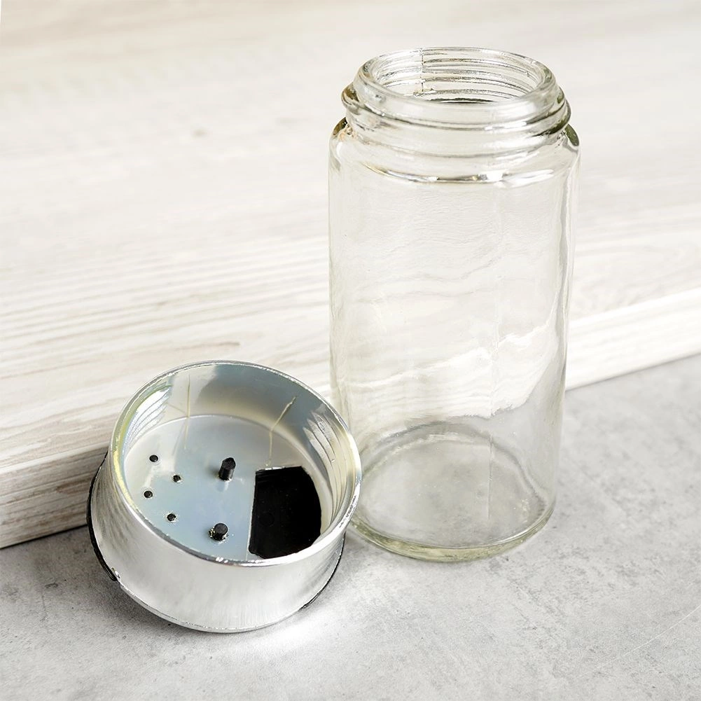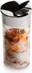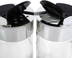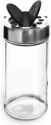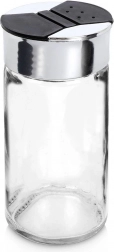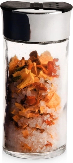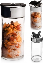 Praktická sklenená korenička s objemom 100 ml s dvojitým sitkom a flip viečkom pre ľahké dávkovanie korenín a byliniek. Vďaka priehľadnému sklu máte obsah vždy pod kontrolou, uzatvárateľné klapky zaistia dlhšiu čerstvosť a arómu. Štýlový doplnok do kuchyne aj gastronomických prevádzok.