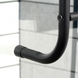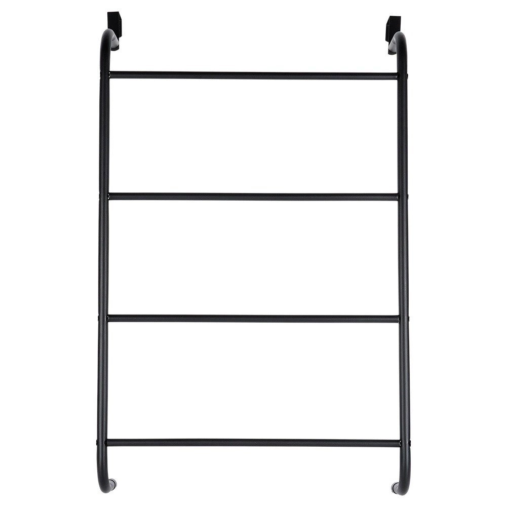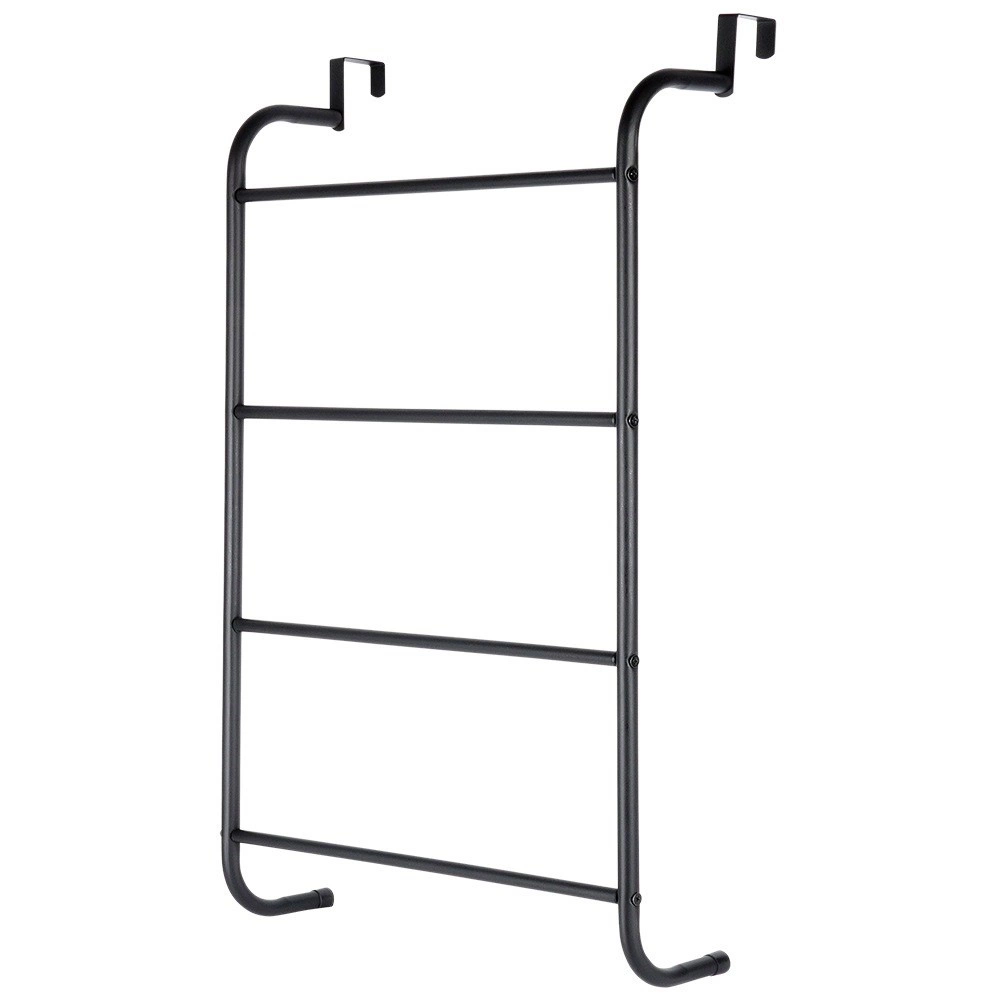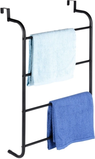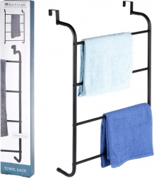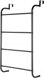 Maximalizujte využitie priestoru vo svojej kúpeľni so šikovným závesným držiakom na uteráky, ktorý jednoducho zavesíte cez hornú hranu dverí. Štyri horizontálne priečky poskytnú dostatok miesta na sušenie aj skladovanie uterákov pre celú rodinu. Kovová konštrukcia v matnom čiernom prevedení sa hodí do moderných interiérov a vďaka odolnému spracovaniu zvládne každodennú prevádzku.