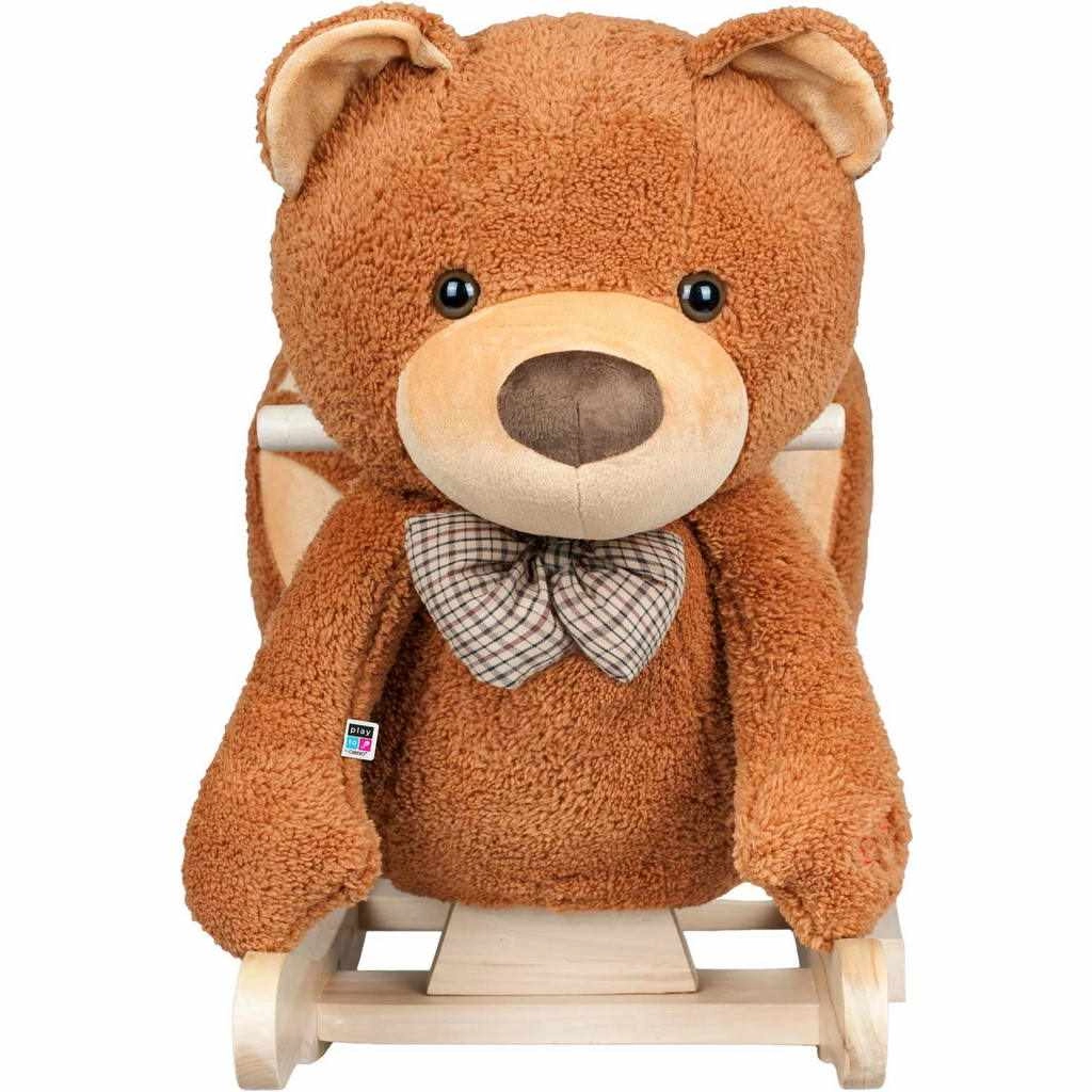 Hojdací medvedík PlayTo je navrhnutý pre pohodlie a bezpečie najmenších jazdcov. Mäkké plyšové spracovanie, tvarované sedlo a drevené rukoväte s nožnými stúpadlami podporujú istotu a správne sedenie. Po stlačení labky medvedík spustí príjemnú melódiu, ktorá spríjemní hranie a rozvíja sluch.