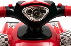 Štýlové detské odrážadlo v tvare štvorkolky od BABY MIX poteší deti od 12 mesiacov. Ponúka 3 melódie, klaksón, blikajúce svetlá na riadidlách a stabilný štvorkolesový podvozok. Ľahká a pevná konštrukcia z kvalitného plastu, široké sedadlo pre pohodlie a praktický úložný priestor pod sedadlom zaistia bezpečnú zábavu doma aj vonku.