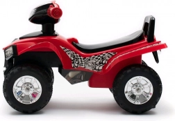 Zábavná a stabilná detská štvorkolka BABY MIX je ideálne odrážadlo pre malých jazdcov od 12 do 36 mesiacov. Ponúka 3 melódie, klaksón a blikajúce svetielka na riadidlách, ktoré podporia hru aj rozvoj motoriky. Vďaka širokému sedadlu, ergonomickým riadidlám a veľkým plastovým kolesám je jazda pohodlná a bezpečná. Praktický úložný priestor pod sedadlom pojme drobné hračky. Vyrobené z kvalitného a pevného plastu až do nosnosti 27 kg.