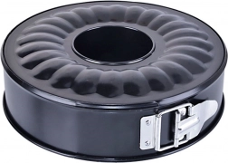 Pevné kovové prevedenie v čiernej farbe je odolné voči vysokým teplotám do 200 °C a bezpečné pre kontakt s potravinami. Forma je ideálna na piškótové korpusy, trené aj krehké cestá, bábovky, ale aj na nepečené torty, želé a ďalšie dezerty. Pre zachovanie dlhej životnosti sa odporúča ručné umývanie a šetrné zaobchádzanie bez ostrých nástrojov.