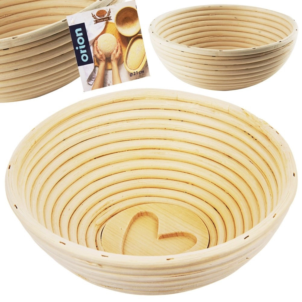 Guľatá ratanová ošatka s priemerom 21 cm s dekoratívnym srdcom pomôže vášmu cestu krásne nakysnúť a udržať tvar tradičného bochníka. Z prírodného ratanu v béžovej farbe pre rovnomerné kysnutie a typické špirálové vzory. Ideálna na bochník cca 1,2 kg (cca 600 g múky), skvelá na domáce aj profesionálne pečenie.