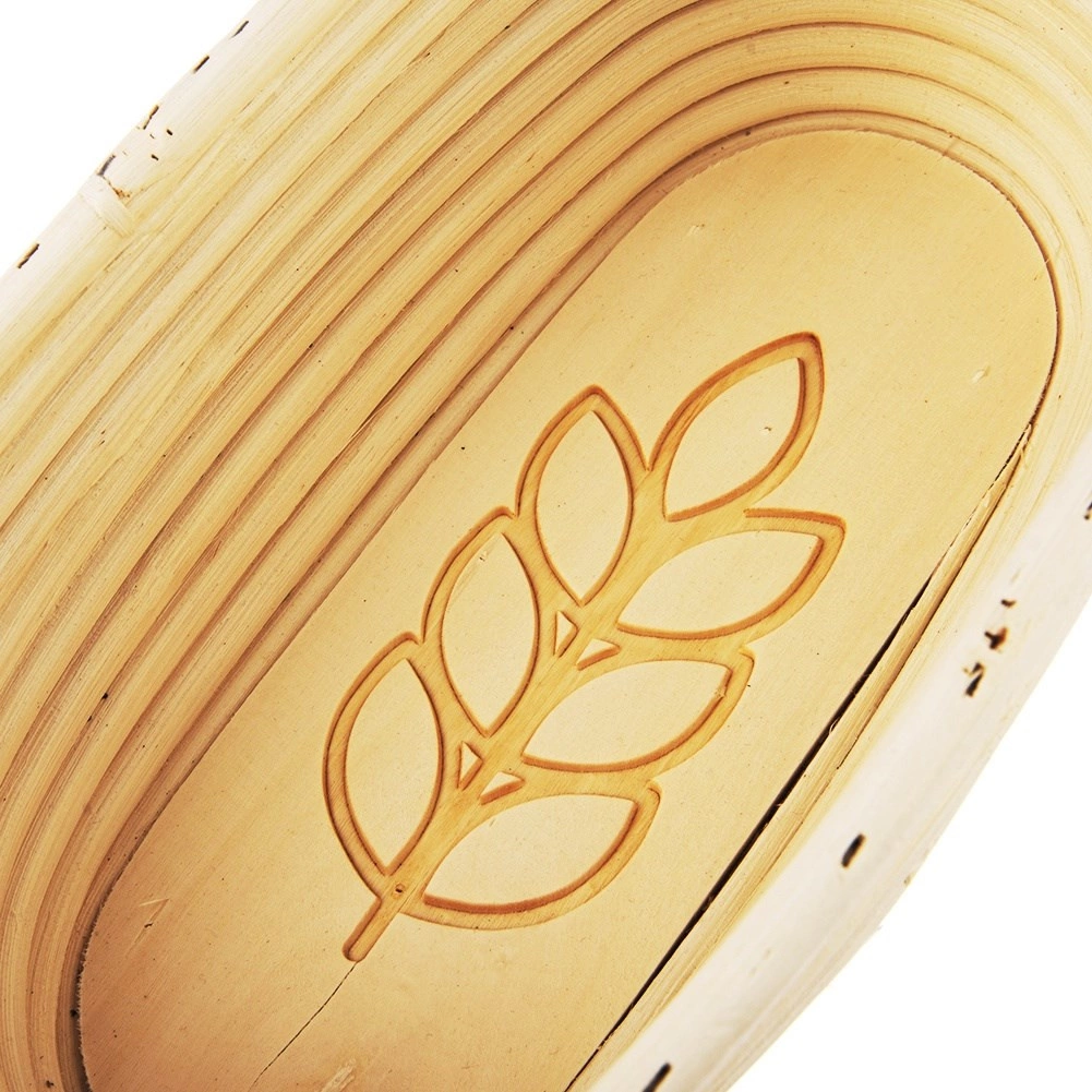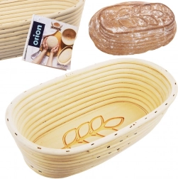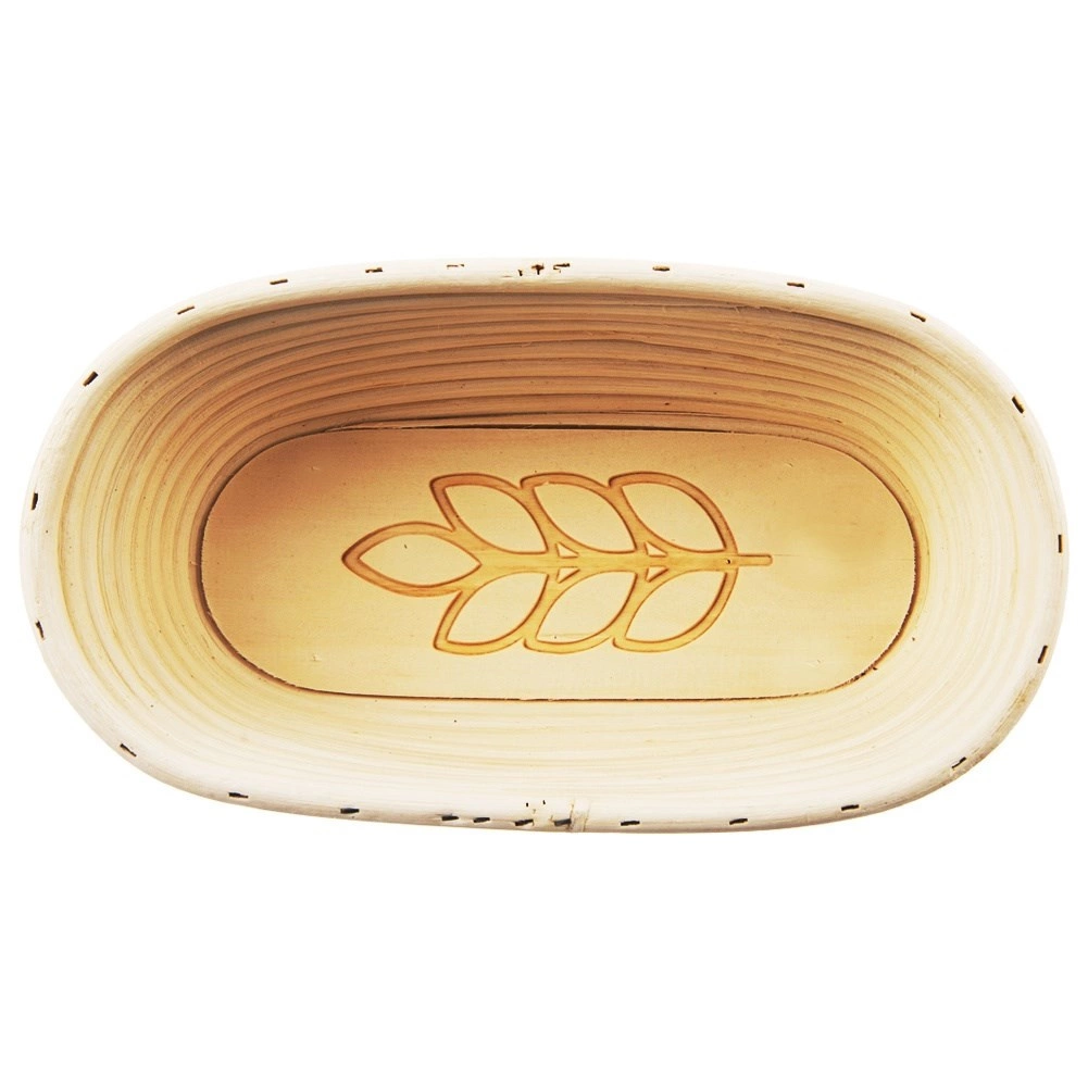 Oválna ratanová ošatka na chlieb s objemom cca 1 kg pomôže vášmu cestu správne kysnúť a udržať tvar. Z prírodného ratanu v béžovej farbe, s dekoratívnym motívom klasu a rebrovaním pre tradičný špirálový vzor na kôrke. Vhodná pre domáce pekárne aj gastronómiu. Stabilizuje tvar cesta, podporuje cirkuláciu vzduchu a vytvára atraktívny rustikálny vzor na bochníku.