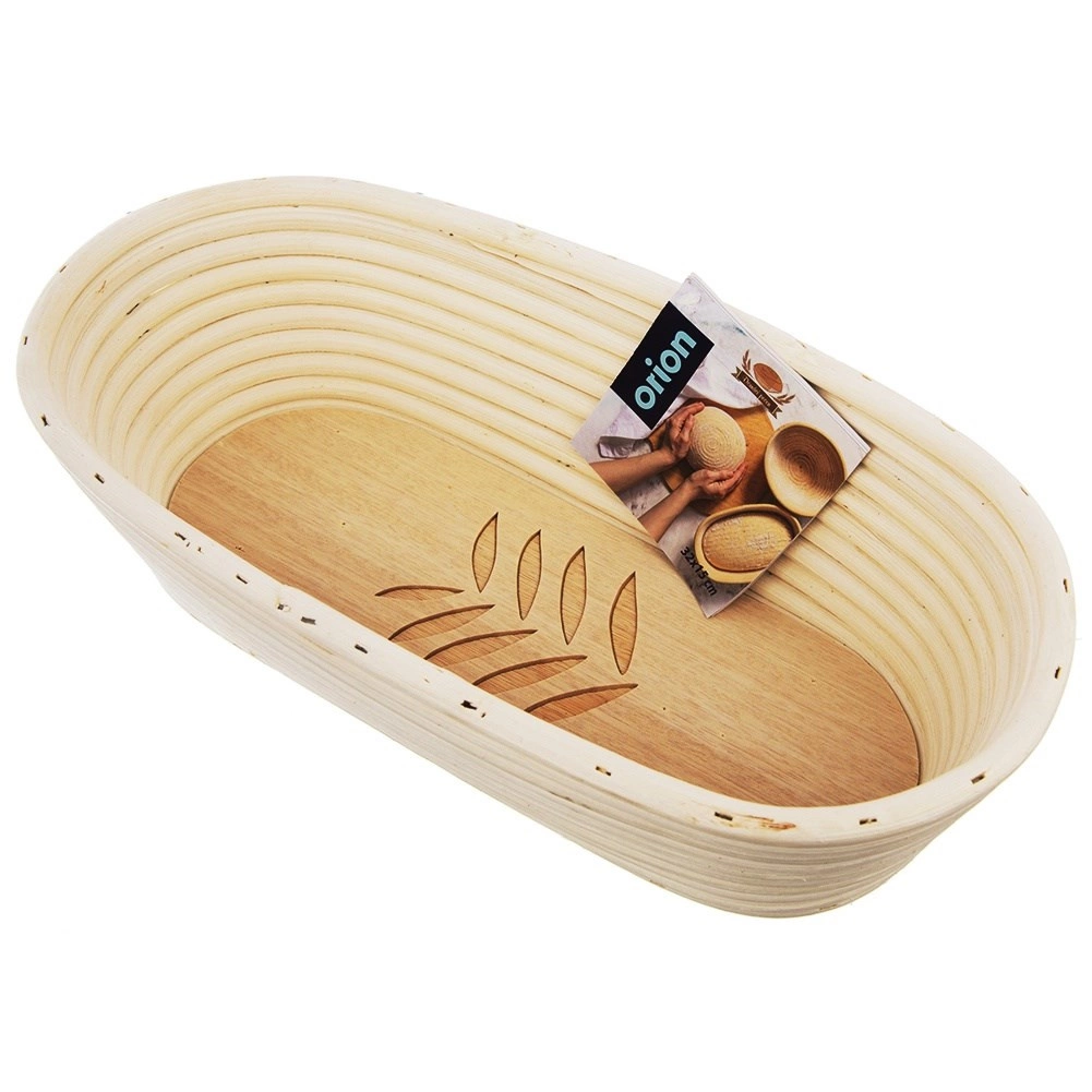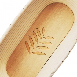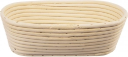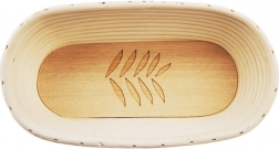 Oválna ratanová ošatka na kysnutie chleba s objemom pre bochník cca 1,5 kg pomáha cestu držať tvar a vytvára na kôrke krásnu štruktúru. Vyrobená z prírodného ratanového vlákna v béžovej farbe, s dekoratívnym motívom listu. Ideálna pre domáce aj profesionálne pečenie – pre lepšiu štruktúru striedky a rovnomerné kysnutie. Prírodný materiál, optimálne odvetrávanie a tradičný tvar bochníka pre perfektný výsledok.